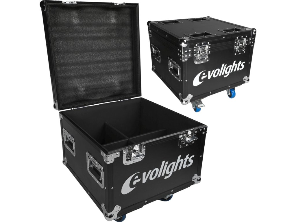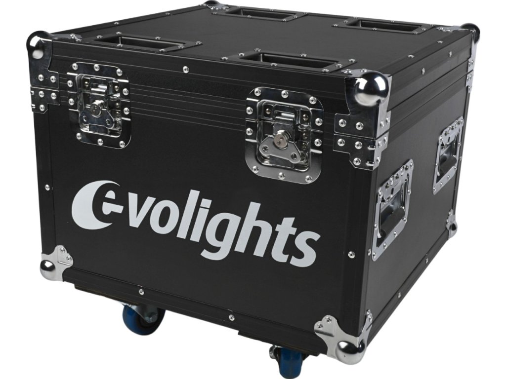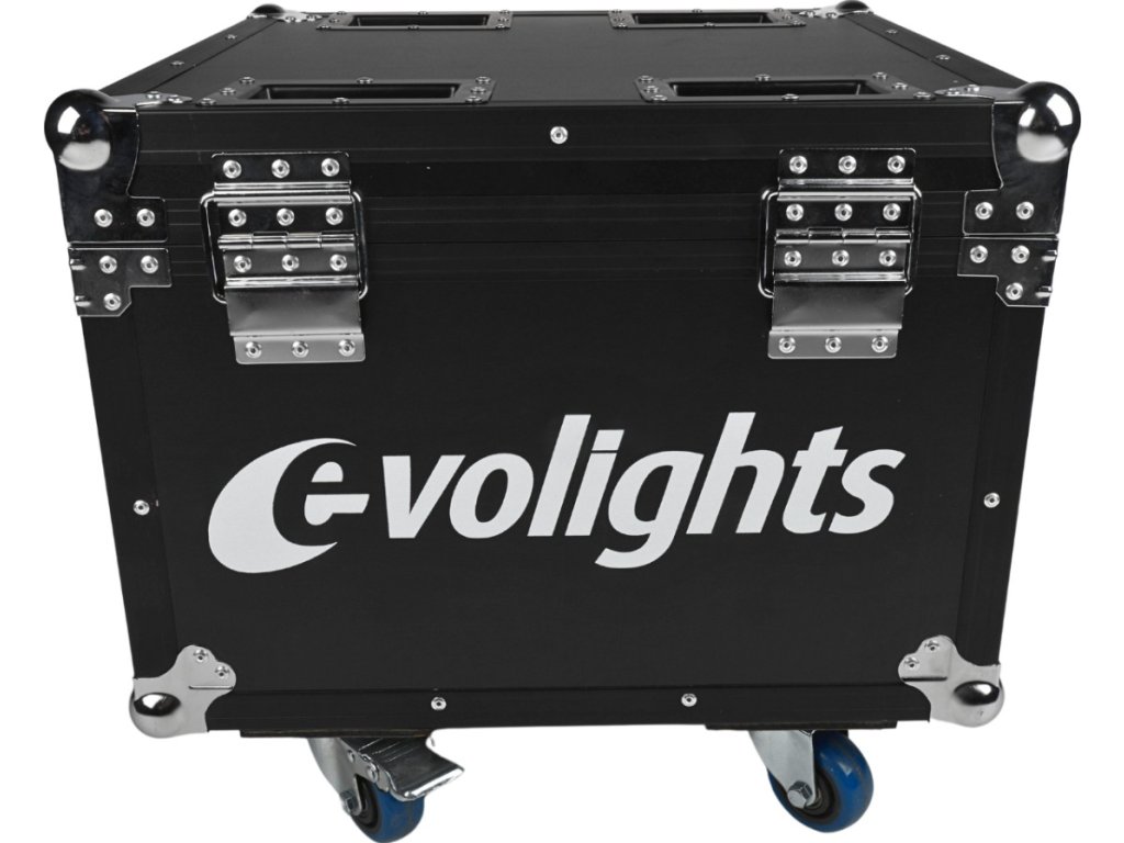 Evolights Glacier 18 Case 4in1 je profesionální a velmi solidně zpracovaný přepravní kufr pro čtyři pódiové PAR reflektory Evolights Glacier 18 nebo jiná zařízení s podobnými rozměry. Case je vyroben z pevné, 7mm překližky natřené černou voděodolnou barvou. Jeho hrany jsou vyztuženy hliníkovými profily. Na rozích se nacházejí kulové chromované kryty, které dodatečně zpevňují konstrukci a chrání okolí kufru díky eliminaci ostrých hran.