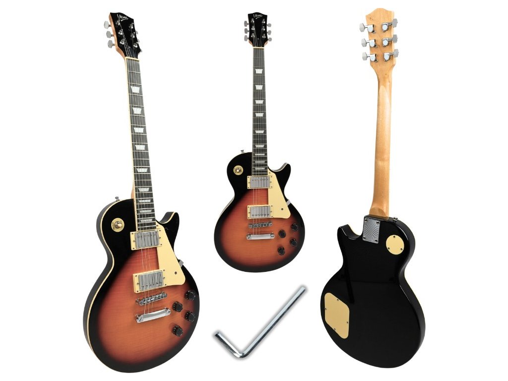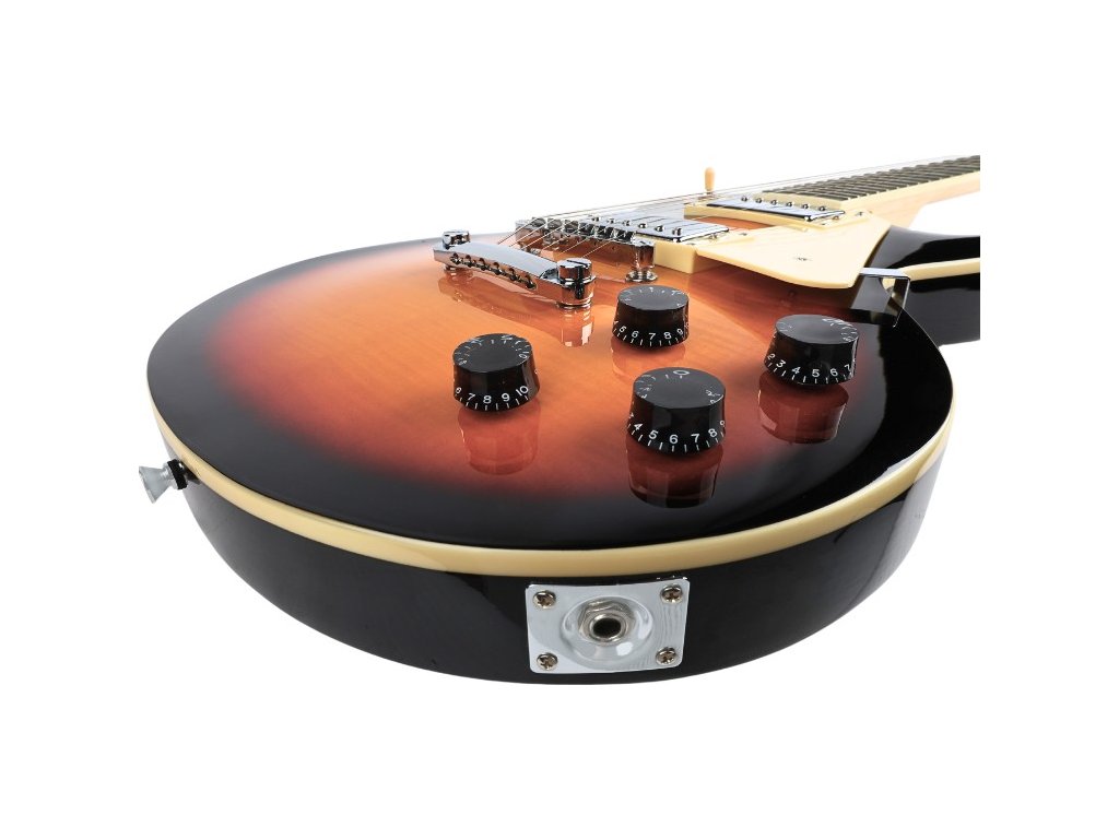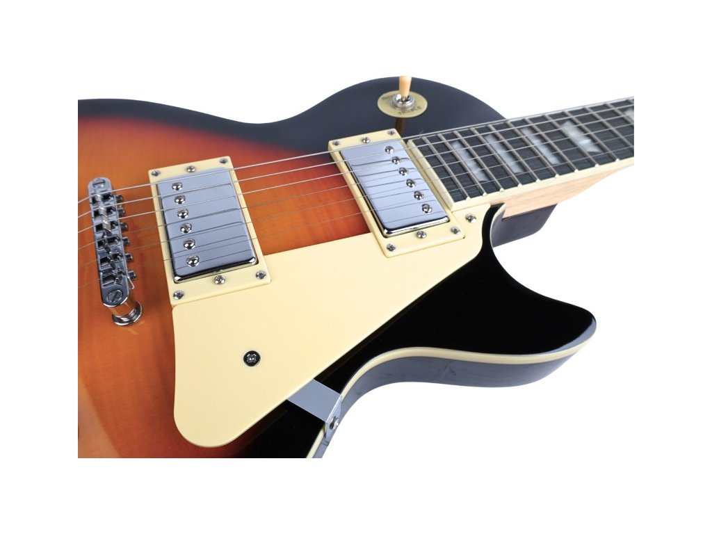 V-TONE GLP39 SBT je elektrická kytara, která nadchne jak začátečníky, tak i zkušené hudebníky. Díky klasické konstrukci typu Les Paul a velikosti 4/4 nabízí výjimečný komfort při hře a vynikající kvalitu zvuku. Tělo s lesklou povrchovou úpravou v barvě sunburst je vyrobeno z lipového dřeva, krk z javoru a hmatník z technického dřeva, což zajišťuje nejen odolnost, ale i estetický vzhled nástroje.