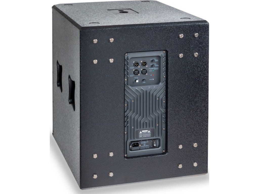 Spolehlivost v náročném provozu zajišťuje vestavěná ochrana proti přehřátí, přebuzení a signálovým špičkám. Konstrukce z 18mm překližky s pevnou ocelovou mřížkou odolá transportu a intenzivnímu používání. Pro snadnou manipulaci jsou k dispozici čtyři zapuštěné rukojeti. M20/36mm příruba umožňuje montáž satelitních reproboxů, a závity pro kolečka (volitelné příslušenství) usnadňují přepravu.