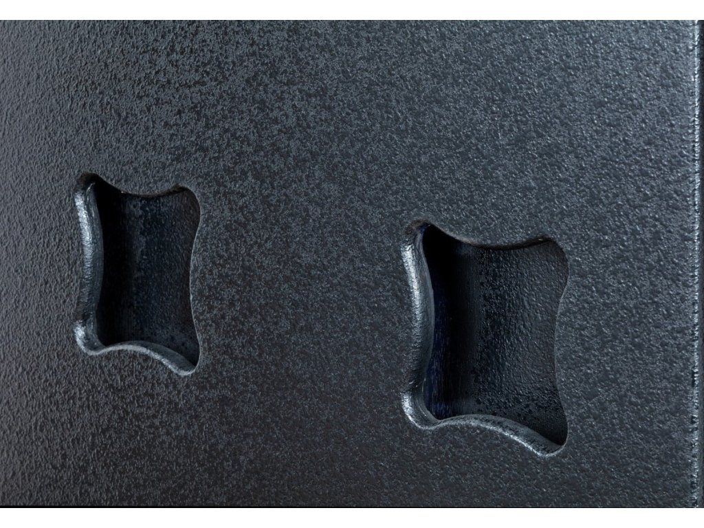 Robustní konstrukce z 18mm překližky s pevnou ocelovou mřížkou odolá i náročným podmínkám na cestách. Pro snadnou manipulaci je subwoofer vybaven čtyřmi zapuštěnými rukojeťmi a M20/36mm přírubou pro uchycení satelitních reproboxů. Možnost instalace volitelných koleček ještě více usnadní transport.