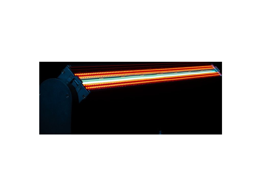 Na jedné straně na vás čeká scénický efekt Vintage Bar, který do prostoru vlije nostalgickou záři. Dominantou je centrální pás čtyř 100W jantarových (amber) COB LED, které dokonale emulují klasické retro blindery s vláknem. Ty jsou obklopeny texturovaným reflektorem osvětleným 140 x 0,8W RGBL SMD LED diodami, které se postarají o vibrující ambientní podsvícení. Ale pozor, stačí otočit a nastupuje Jolt Bar! Tato strana je čistá energie: centrální pás 448 x 1W studených bílých stroboskopických LED je obklopen dalšími 448 x 0,5W RGB LED pro míchání barev. Výsledkem jsou odvážné, vysoce intenzivní barevné plochy (washe). Budete se cítit skvěle, když uvidíte, jak snadno můžete přepínat z hřejivé retro nálady do úderné moderní stroboskopické show.
