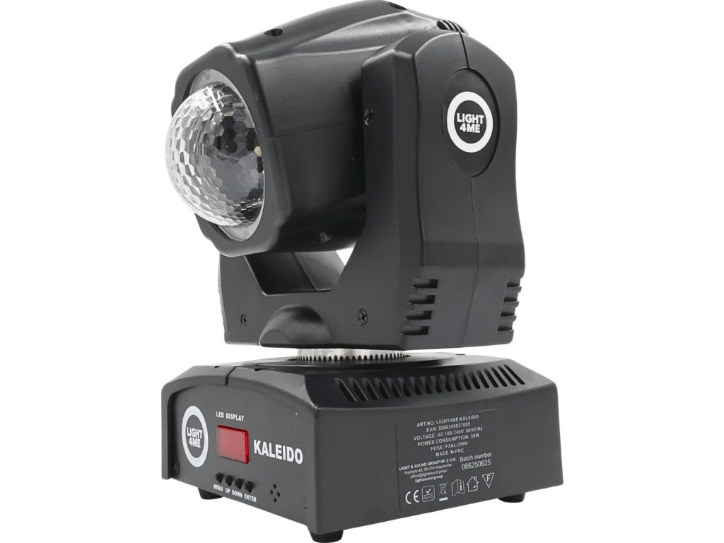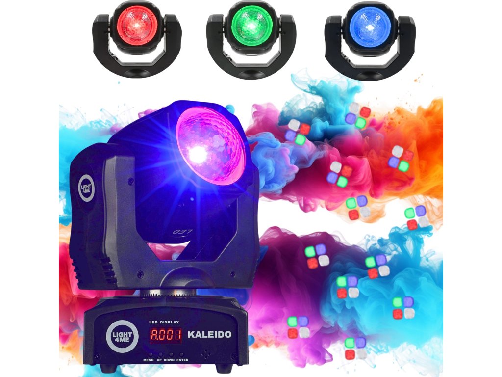 Objevte neuvěřitelně efektní světelný efekt, který zcela promění vaše vystoupení a akce Light4Me Kaleido je moderní otočná FX LED hlava, která kombinuje dynamické pohyby, syté barvy RGBW a efekt kaleidoskopu, čímž vytváří jedinečné scénické iluminace. Díky úhlu vyzařování 127° a výkonnému světelnému zdroji 10W LED 4v1 zajišťuje intenzivní a rovnoměrné osvětlení v klubech, svatebních sálech, během eventů a mnohem více.