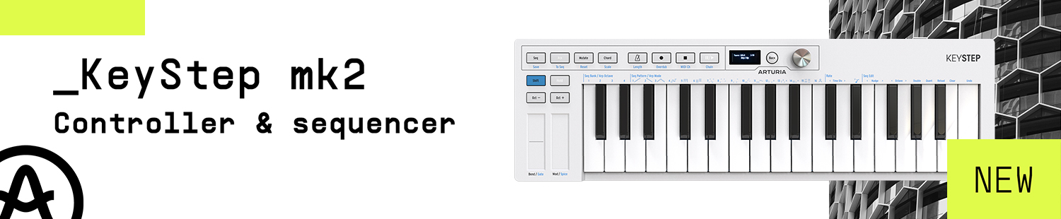 KeyStep mk2 je vybaven klaviaturou s 32 slim klávesami s velocity a aftertouch pro expresivní ovládání na malé ploše. Pitch a mod stripy umožňují intuitivní tvarování v reálném čase, zatímco vestavěné režimy akordů a stupnic umožňují snadné objevování nových hudebních frází.