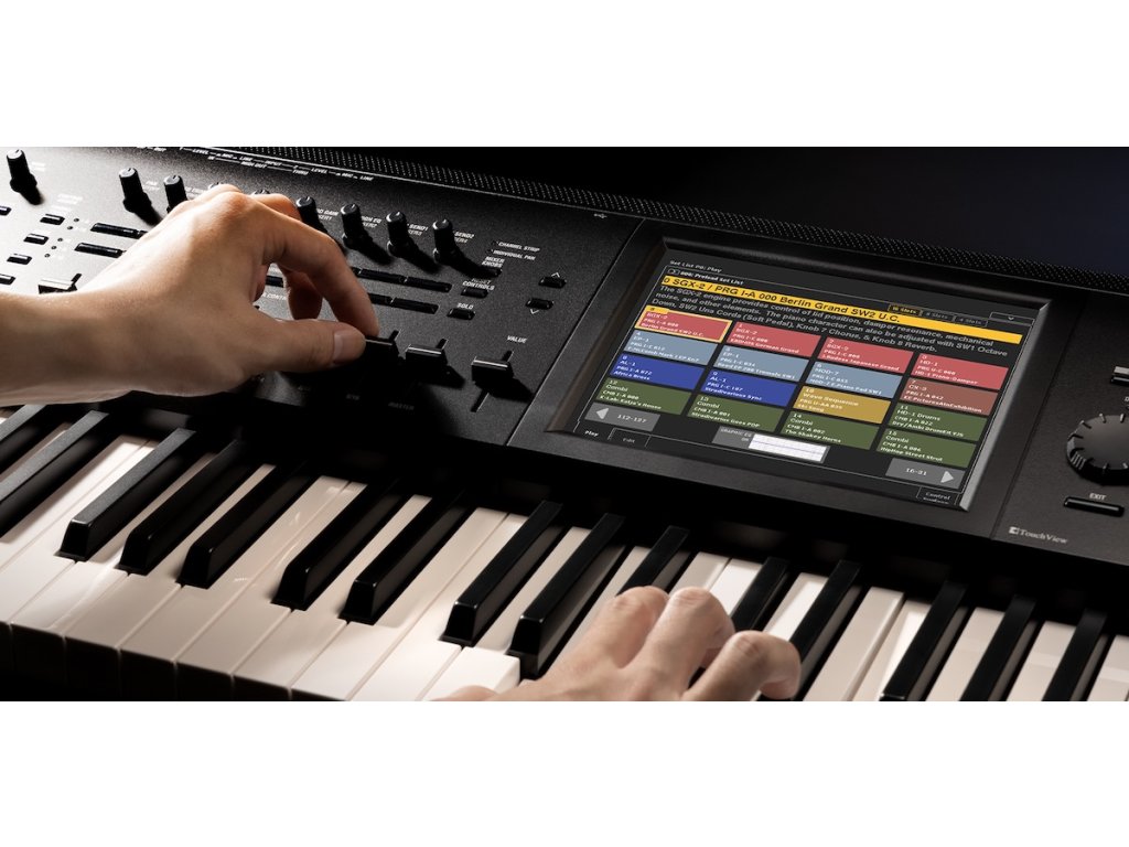 Kromě běžného výběru zvuků či parametrů dotykem prstu nabízí také pokročilou funkci Touch-Drag, díky které můžete přesně nastavovat hodnoty parametrů. Interaktivní grafika nástrojů a panelů umožňuje upravovat detaily jako výšku otevření víka koncertního klavíru či propojování kabelů v semi-modulárním syntezátoru.