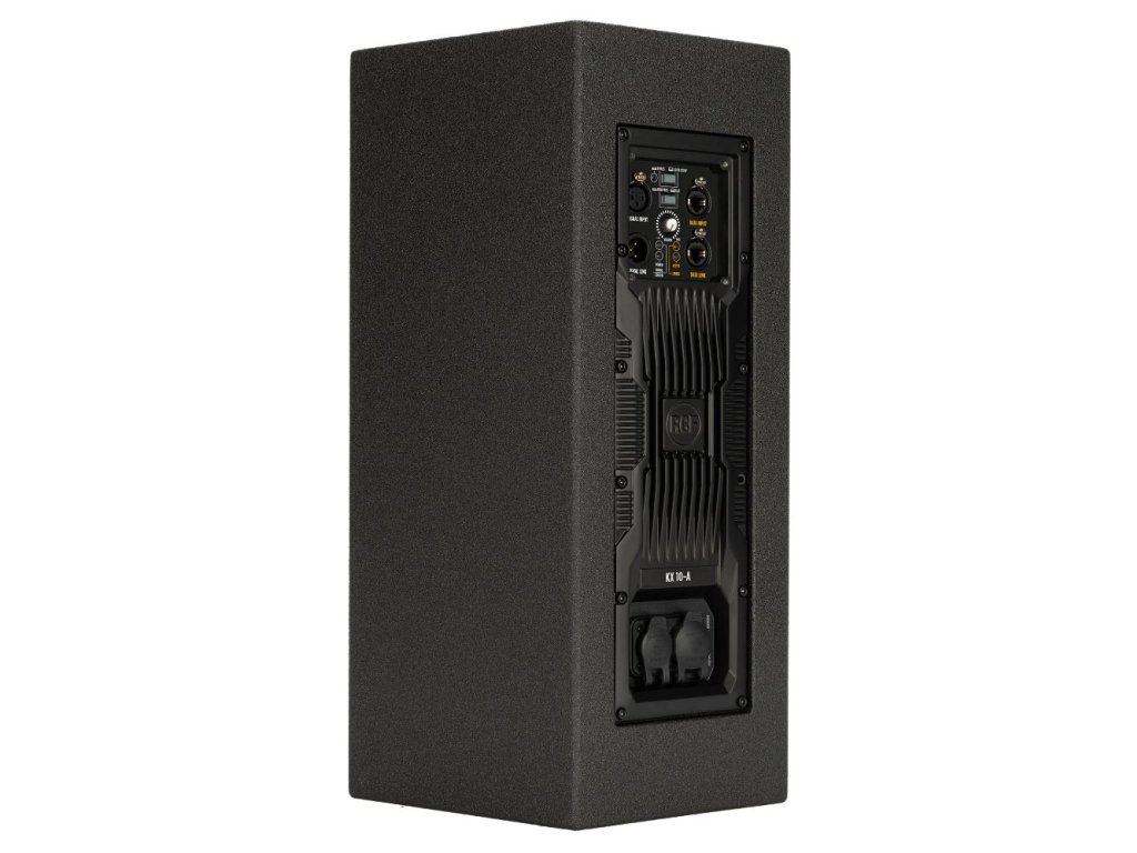 KX 10-A je kompaktní, vysoce výkonný 2-pásmový aktivní reprobox navržený pro profesionální uživatele, který kombinuje přesnou směrovost, vysokou úroveň akustického tlaku a pokročilou systémovou integraci. Nízkofrekvenční sekce je vybavena 10" neodymovým driverem v basreflexovém provedení, vysokofrekvenční sekce je vybavena neodymovým kompresním driverem s 1,75“ PKX membránou, připojeným na 100° x 50° zvukovod True Resistive Waveguide, který lze otočit o 90°, což umožňuje flexibilní možnosti pokrytí. Integrovaný dvoukanálový zesilovač Class-D o výkonu 2000 W s proprietárním DSP zpracováním a vzdálenou správou přes RDNet umožňuje optimální výkon systému. Jeho odolný, multifunkční skelet s rychlým uchycením (Quick Fit) a závity M10 podporuje všestranné použití od instalací na zem, přes umístění na stojan, až po zavěšení.