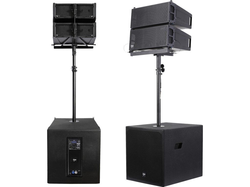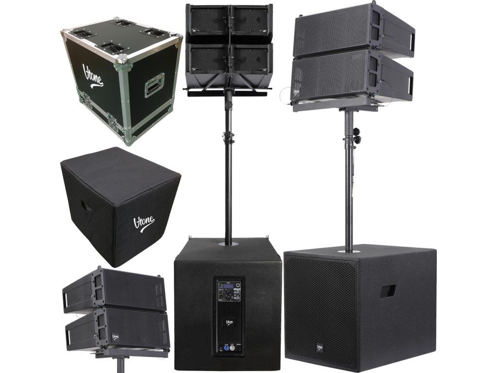 Ozvučovací set V-TONE se skládá z aktivního subwooferu s 15palcovým wooferem 4 Ω a dvou pasivních středo-výškových modulů (4 středové reproduktory 6,5 palce 4 Ω + 2 výškové reproduktory 1,35 palce 8 Ω), které společně dosahují akustického tlaku SPL 139 dB. Zesilovač třídy D, Bi-Amp zaručuje vysokou účinnost a minimální zkreslení při zesílení signálu. Subwoofer je vybaven napájecími konektory PowerCon, včetně výstupu „link“, který umožňuje řetězení napájení přímo z jednoho zařízení do druhého, což omezuje potřebu dlouhé a nepraktické kabeláže. Tři přiložené stahovací pásky umožňují udržovat v kabelech pořádek během přepravy i skladování. Možnost nastavení úhlu sklonu reproduktorů (1–7°) dovoluje přesně přizpůsobit systém danému prostoru. Široký frekvenční rozsah 40–20 000 Hz zajišťuje, že každá nota i každé slovo budou jasné a srozumitelné.