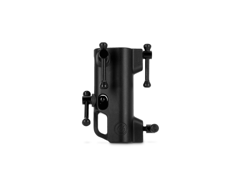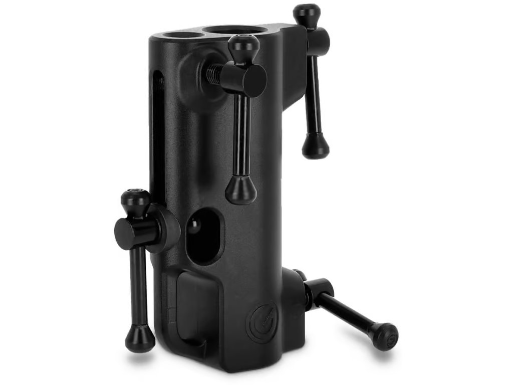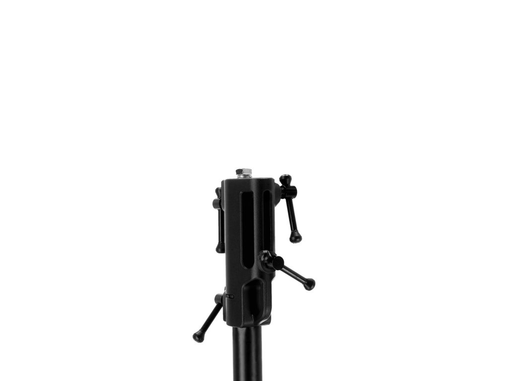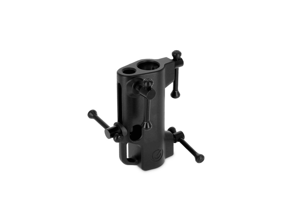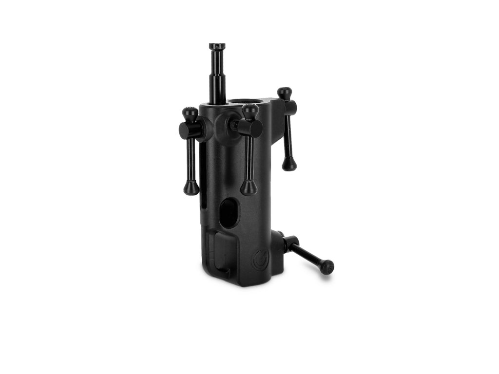 Odolnost a stabilita pro profesionální použití. Vyroben z pevného, práškově lakovaného tlakově litého hliníku, zajišťuje adaptér dlouhodobou stabilitu a spolehlivost. Praktický chránič trubky stojanu zabraňuje jeho poškození, zatímco T-bar přepínače umožňují rychlé a bezpečné uzamčení.