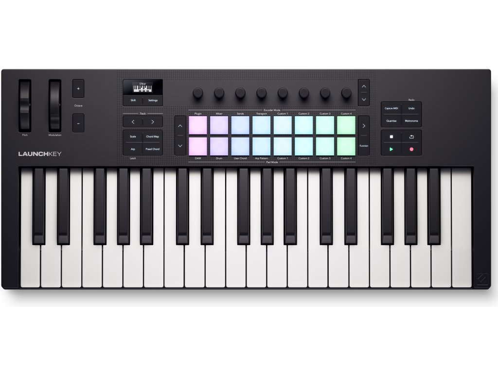 Novation Launchkey 37 je výkonný DAW kontroler se synth-type klaviaturou, osmi kontinuálními enkodéry a 16 tlakově citlivými pady pro finger drumming a spouštění klipů. Kontroler také obsahuje kreativní režimy Chord a Scale, které spolupracují s OLED displejem, abyste se snadno drželi tóniny.