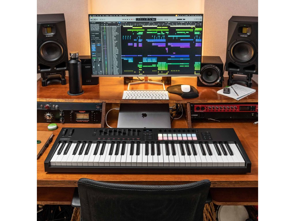 Pokročilá DAW kontrola je jednou ze zásadních vlastností, kde Launchkey exceluje. Bezproblémové ovládání aplikací Ableton Live, Logic Pro, FL Studio, Cubase, Reaper, Reason a Ardour je dostupné ihned po připojení bez nutnosti cokoli nastavovat. Získáte hardwarově podporované ovládací prvky, které vám umožní plně ovládat transportní funkce, navigaci po časové ose, mixování a ekvalizér, spouštění klipů a parametry nástrojů a efektů. A při použití Session View v Ableton Live nebo Live Loops v Logicu se 16 bicích padů promění ve spouštěče klipů ve stylu Launchpad s RGB podsvícením, které dokonale odpovídá tomu, co vidíte na obrazovce. Lze také vytvářet uživatelská mapování pro přizpůsobené ovládání díky bezplatnému software Components.