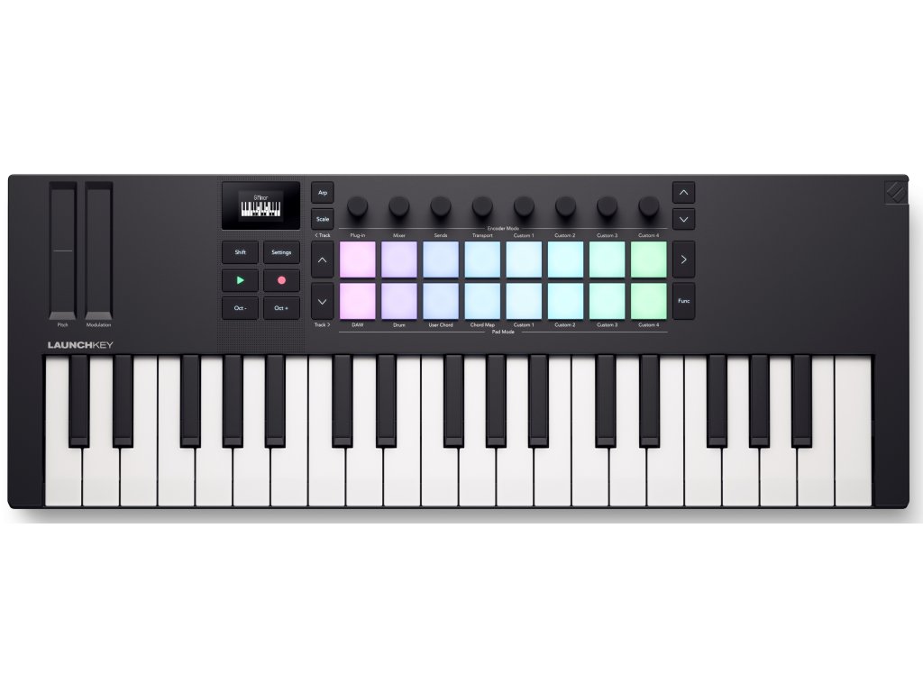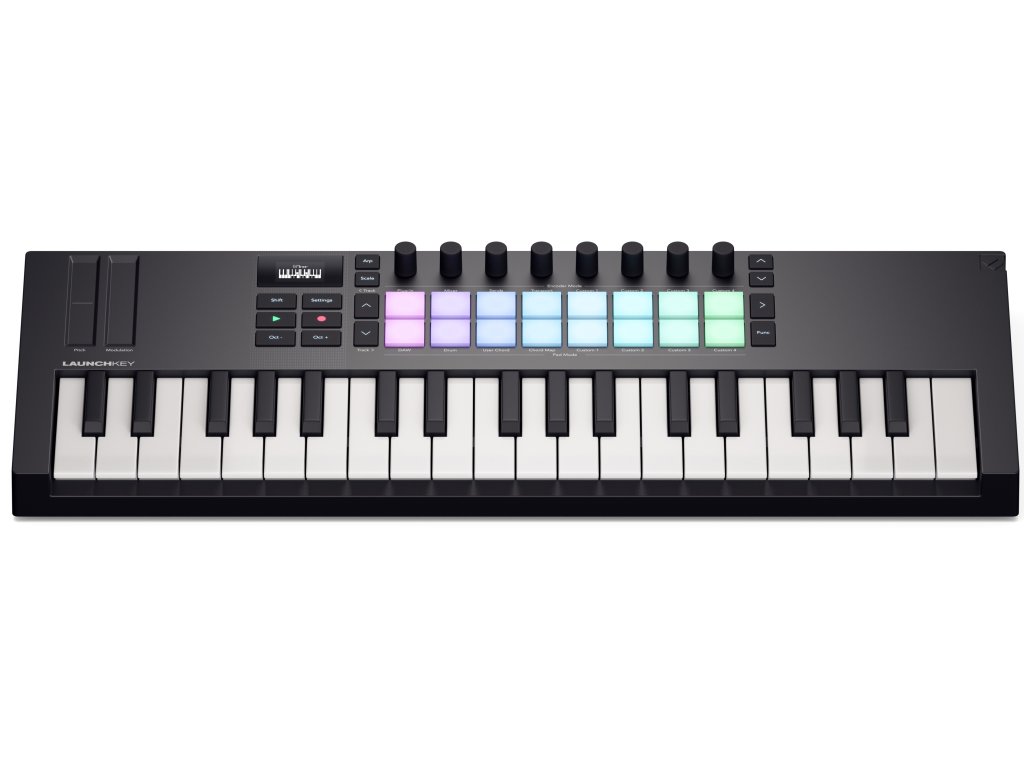 Novation Launchkey Mini 37 je výkonný DAW kontroler se synth-type mini klaviaturou, osmi kontinuálními enkodéry a 16 tlakově citlivými pady pro finger drumming a spouštění klipů. Kontroler také obsahuje kreativní režimy Chord a Scale, které spolupracují s OLED displejem, abyste se snadno drželi tóniny.