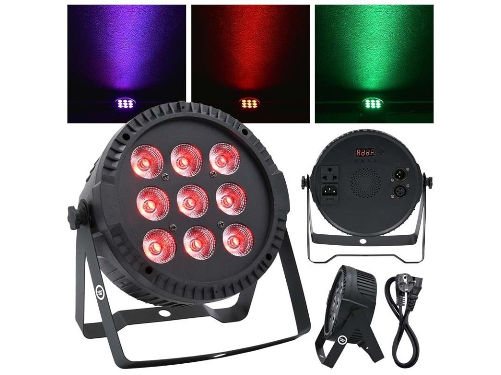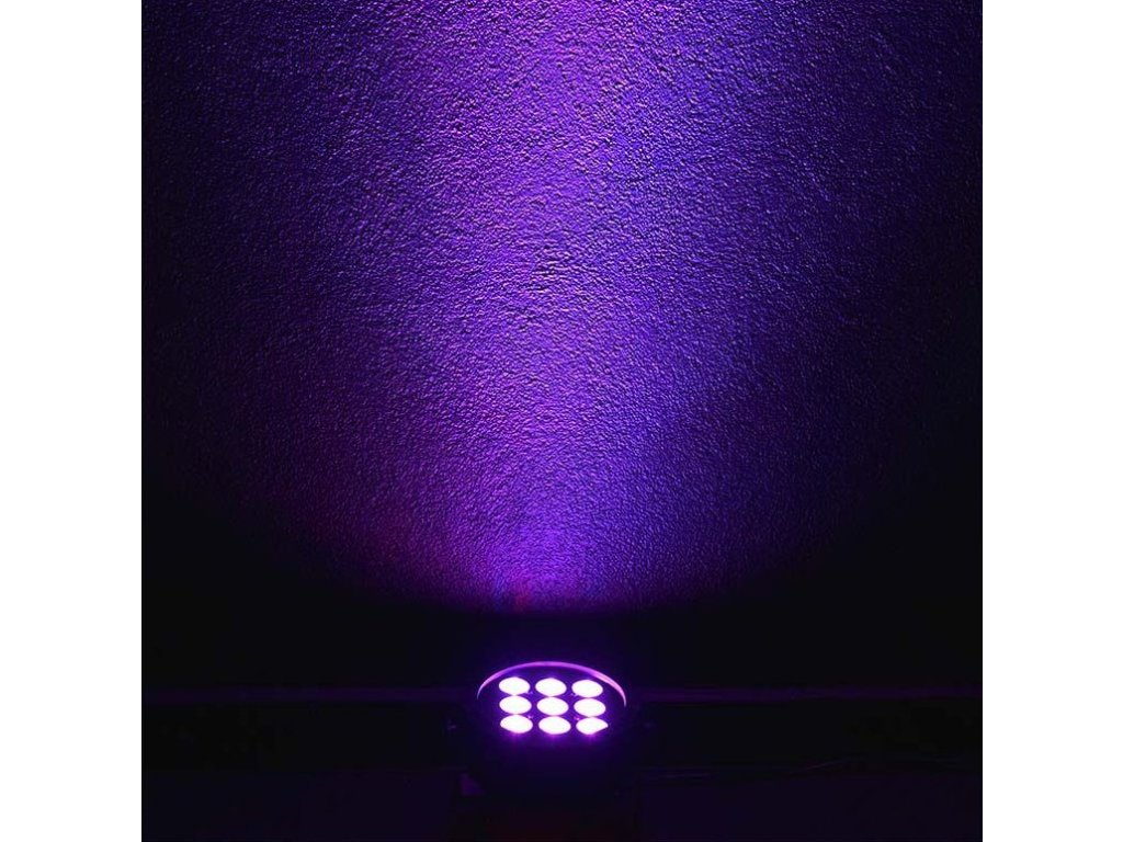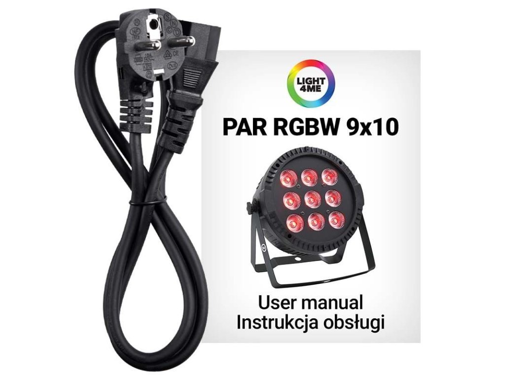 Light4Me PAR RGBW 9x10 je výkonný a velmi účinný LED PAR reflektor ideální pro světelnou výzdobu svatebních sálů, pódií a hudebních klubů a diskoték. Reflektor je vybaven 9 výkonnými, 10W LED diodami pracujícími se světlem v paletě RGBW. Má vstup a výstup DMX a ovládací panel sestávající z digitálního displeje a čtyř tlačítek. Pomocí nich se můžeme pohybovat v nabídce, měnit provozní parametry nebo vybrat jeden ze čtyř provozních režimů zařízení.