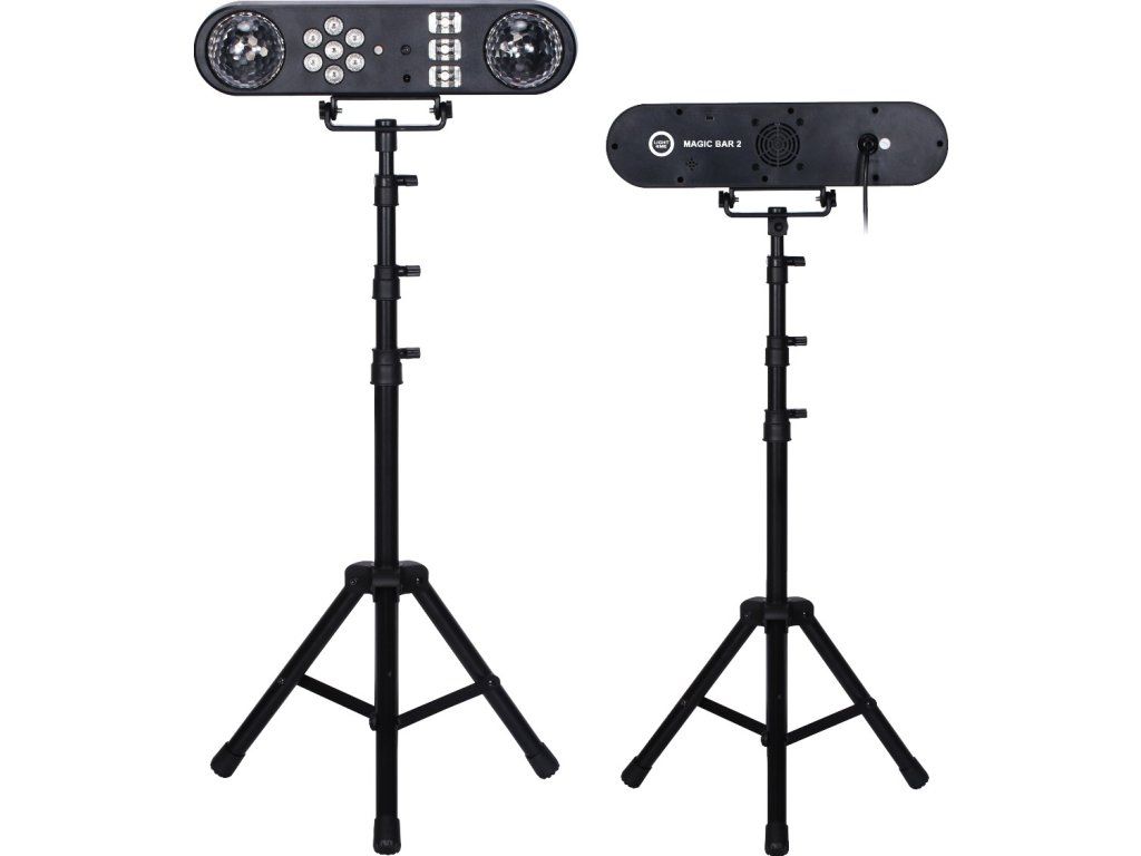 Hledáte světelný multiefekt, který rozproudí atmosféru na každé akci. Light4Me Magic Bar 2 je komplexní pódiové řešení ovládané pomocí pohodlného bezdrátového infračerveného dálkového ovladače, které v sobě kombinuje dynamické efekty par (sedm RGB LED diod o výkonu 2 watty každá), Magic Ball (šest RGB LED diod o výkonu 3 watty každá), bílý stroboskop, UV světlo (tři W+UV LED diody o výkonu 4 watty každá) a dva lasery (červený - 100 mW, 650 nm - a zelený - 30 mW, 532 nm). Díky Light4Me Magic Bar 2 vytvoříte neopakovatelnou atmosféru jak v klubu, tak na domácí párty nebo na pódiu. Oživte parket přehlídkou barev a efektů, které si přizpůsobíte vlastním potřebám.