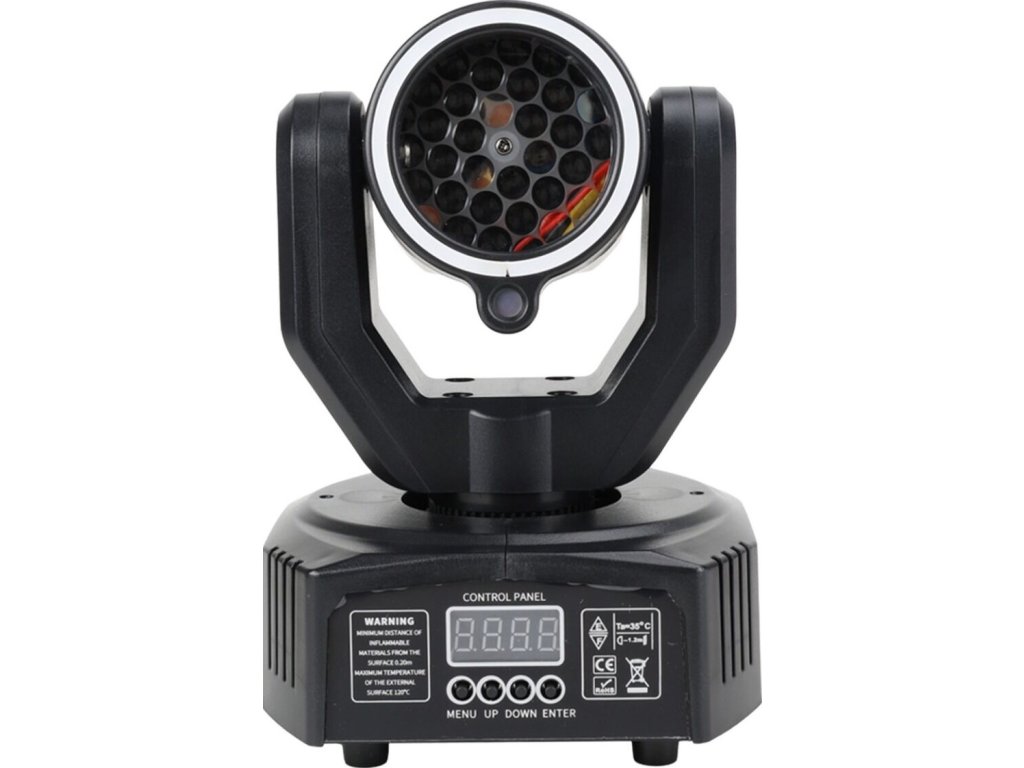 - Ovládání: automatické, DMX, infračervený dálkový ovladač (IR), manuální