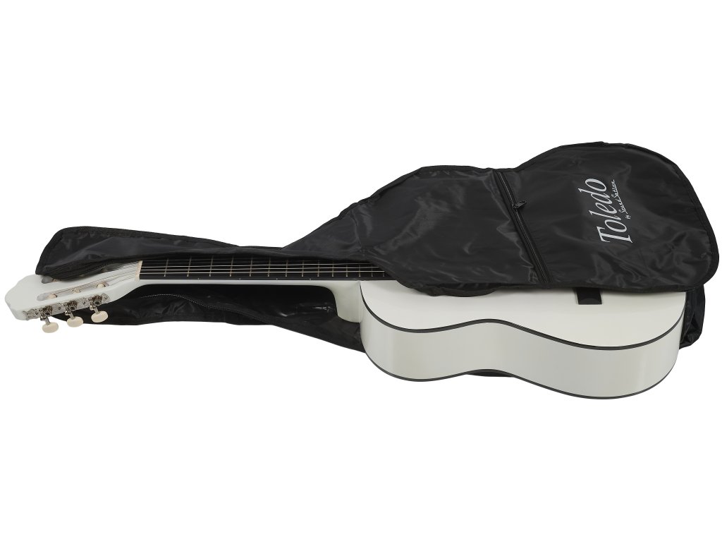 Mezi tradiční prvky patří elegantní černá lemovka a dekorativní rozeta, které dodávají kytaře klasický vzhled. Pro okamžité použití a ochranu při přenosu je kytara dodávána včetně praktického obalu (gig bag).