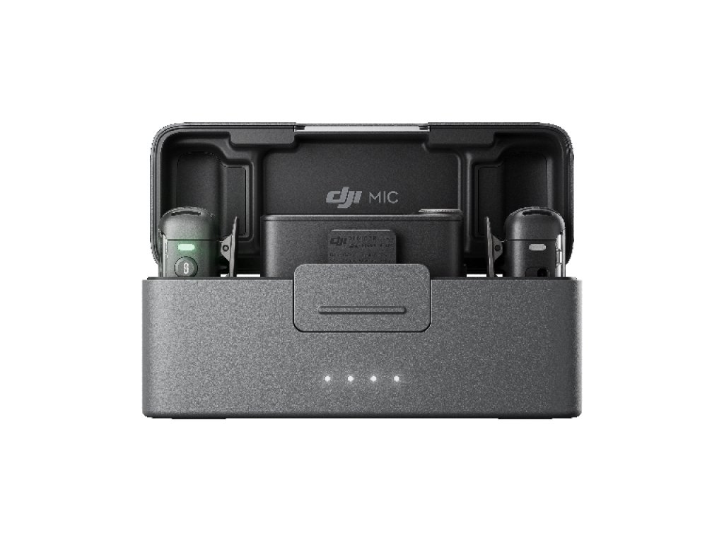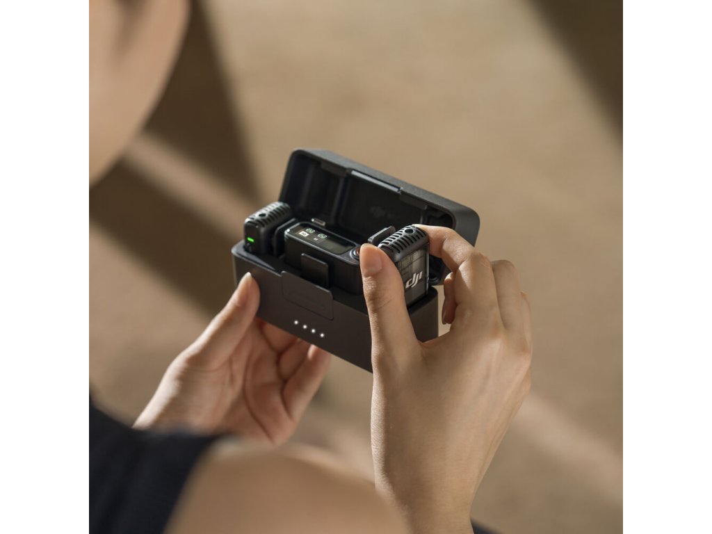 DJI Mic 2 se automaticky zapne, jakmile otevřete nabíjecí pouzdro. Toto chytré pouzdro automaticky spáruje přijímač a vysílače během jejich nabíjení, takže můžete začít po otevření pouzdra ihned nahrávat. Obsahuje také adaptéry USB-C i Lightning, které poskytují bezproblémovou práci s vašimi preferovanými nahrávacími zařízeními.
