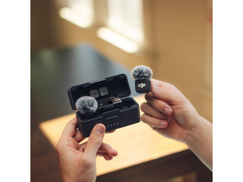 DJI Mic 3 je kompaktní, lehký a nenápadný. Podporuje magnetické uchycení i připnutí pomocí klipu. Do nabíjecího pouzdra se bez problémů vejdou dva vysílače a jeden přijímač. Při uložení vysílačů s klipy je ve víku navíc prostor pro magnety a zajišťovací audio adaptér, takže máte vše přehledně uspořádané a vždy připravené k použití.