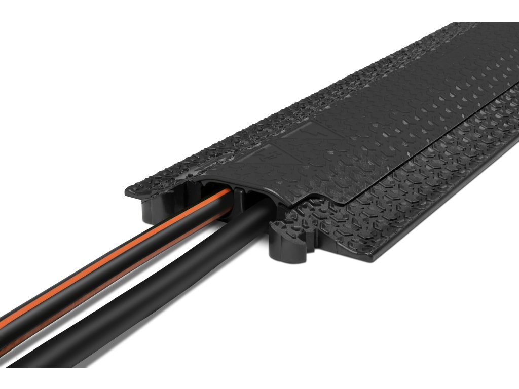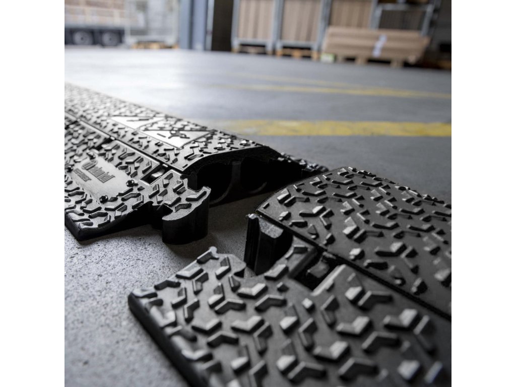 Díky dvěma prostorným vedením (35 x 30 mm) pojme i silné kabely nebo vodní hadice. Její mimořádná odolnost je zajištěna maximální nosností 2 tuny na plochu 20 x 20 cm, což znamená, že bezpečně odolá přejetí vozidly, vozíky i lidem.