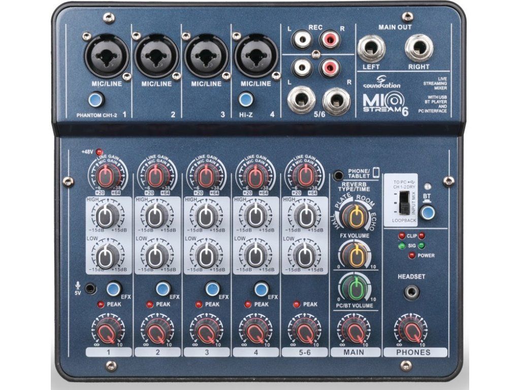 Pro rychlé vylepšení zvuku je k dispozici vestavěný digitální efektový procesor se 4 přednastavenými efekty, který eliminuje potřebu externích efektových jednotek. Díky své kompaktní konstrukci a intuitivnímu ovládání je MIOSTREAM6 spolehlivým partnerem pro tvůrce obsahu na cestách.