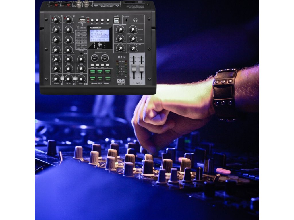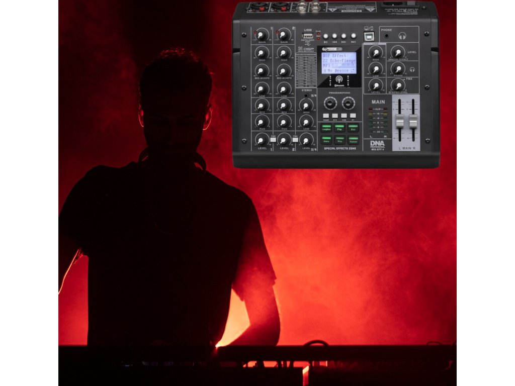 DNA MIX-EFF 4 je kompaktní, a přitom multifunkční analogový audio mixážní pult, který se osvědčí v každé situaci vyžadující spolehlivé zpracování zvuku. Je vybaven 4 kanály a dvěma symetrickými combo vstupy XLR/jack 6,35 mm, dvěma vstupy jack 6,35 mm, stereo vstupem jack 3,5 mm, dvěma výstupy jack 6,35 mm a sluchátkovým výstupem jack 3,5 mm, což umožňuje flexibilní připojení mikrofonů, nástrojů a dalších externích audio zařízení. Vestavěný přehrávač audio souborů – využívající porty USB-A pro externí paměť a USB-B pro připojení k počítači nebo smartphonu – a standard bezdrátové komunikace Bluetooth umožňují rychlé přehrávání a nahrávání zvuku bez zbytečné kabeláže. DNA MIX-EFF 4 je ideálním řešením pro DJ, domácí nahrávací studia, zkušebny a také pro organizátory live akcí.
