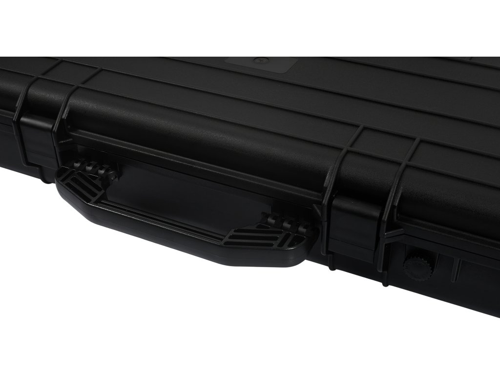 Kufr je vybaven masivními panty a spolehlivými zámky, které zajistí bezpečné uložení nástroje. Ergonomické horní madlo umožňuje pohodlné přenášení, zatímco zesílené hrany a konstrukční výztuhy zvyšují celkovou pevnost a životnost kufru.