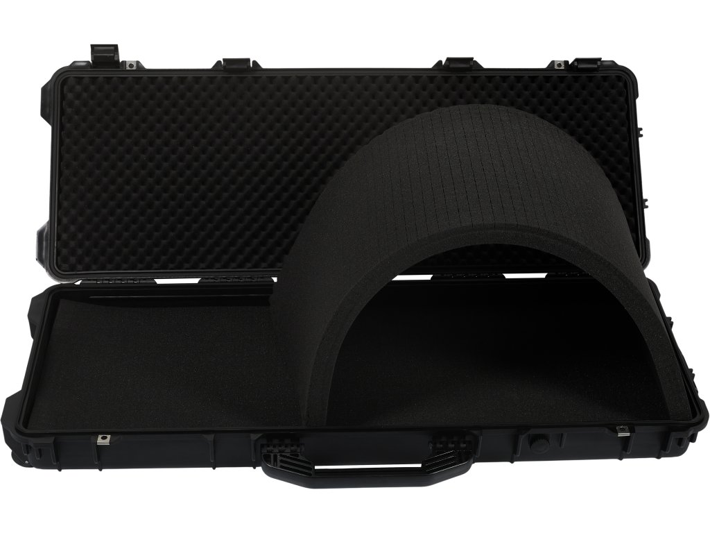 Je vyroben z tvrzeného lisovaného plastu, což mu zajišťuje vysokou odolnost proti nárazům, tlaku a povětrnostním vlivům. Tato konstrukce je ideální pro koncerty, cestování i náročné turné.