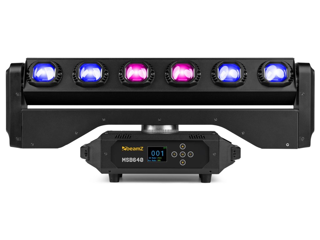 BeamZ MSB640 je pokročilá pohyblivá hlava s oboustranným LED barem určená pro vytváření všestranných a působivých světelných efektů. Jedná se o vylepšenou verzi jednostranných modelů, která nabízí velký rozsah pohybu, 720° otáčení celé hlavy a nekonečné naklápění (rotaci) LED baru, což umožňuje dynamické a plynulé pohyby. Jedna strana je vybavena 6 vysoce výkonnými 40W RGBW LED diodami s pixelovým ovládáním pro výkonný wash-zoom efekt, zatímco druhá strana je vybavena 224 RGB LED diodami v 16 sekcích a 56 bílými LED diodami v 8 sekcích pro intenzivní stroboskopické efekty. MSB640 je víceúčelové scénické světlo, ideální pro koncerty, kluby a všechny další možné produkce.