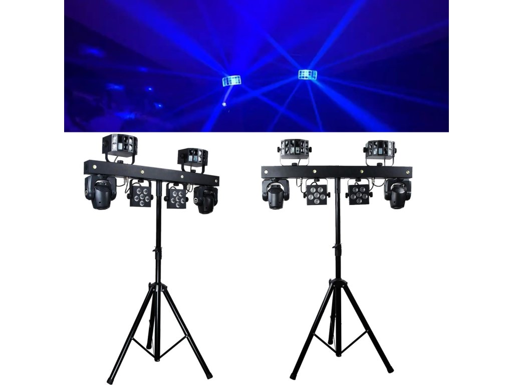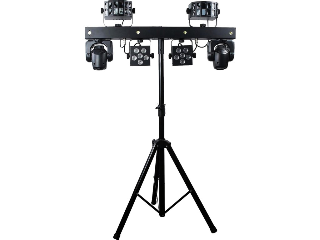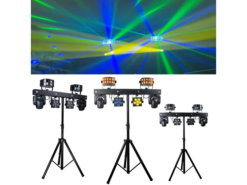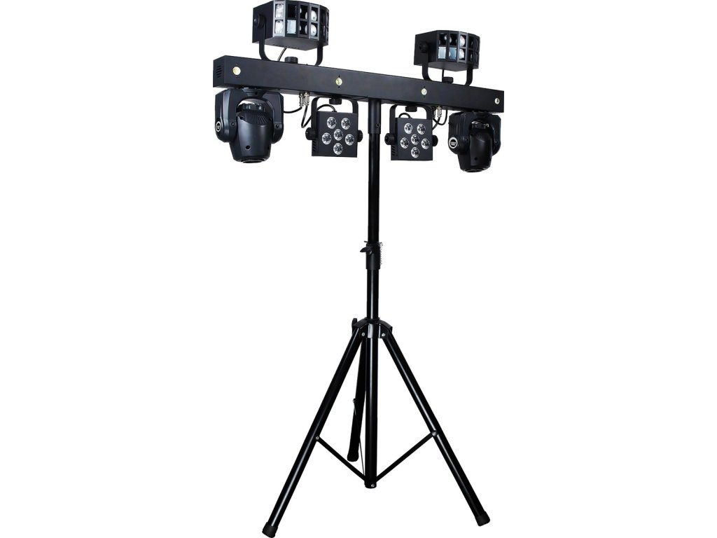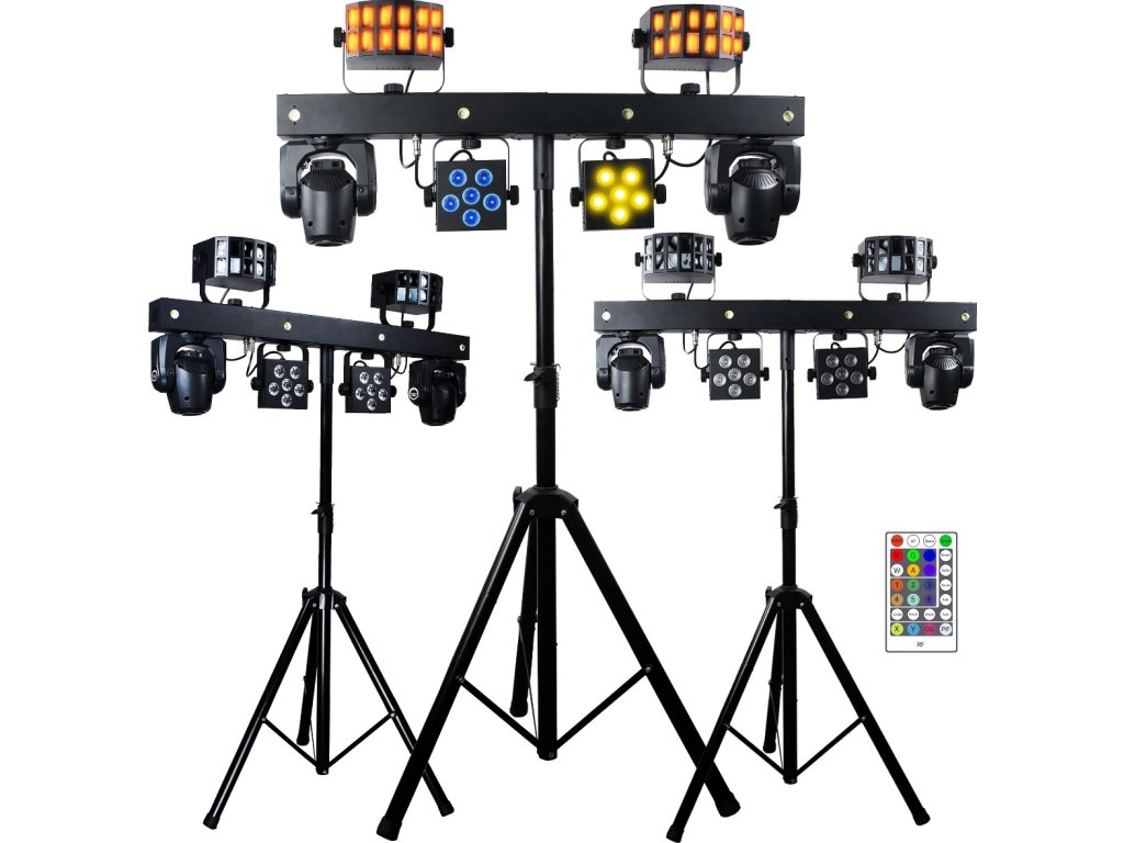 Tento set je dokonalým nástrojem pro DJe, hudební skupiny a organizátory akcí, kteří chtějí vyniknout díky profesionálnímu osvětlení. Provozní režimy Auto, Sound (s dalšími typy fungování – normal, soft, disco), Master/Slave, DMX a W-DMX poskytují flexibilitu ovládání a umožňují přizpůsobení jakékoli scéně a podmínkám. Zařízení je vybaveno napájecími zásuvkami PowerCon, včetně tzv. „linkování“ (power linking), které umožňuje přivádět napětí přímo ze zařízení do zařízení, což omezuje potřebu dlouhé a obtěžující kabeláže. Díky ovládání DMX (3/24/46 kanálů) můžete propojit více jednotek a vytvořit profesionální světelný systém. Vestavěná makra pohybu Pan/Tilt, možnost ovládání pomocí bezdrátového nožního spínače (lze dokoupit samostatně), efekty Color Fade a blinder a barevné předvolby dodávají každé scéně nový rozměr.