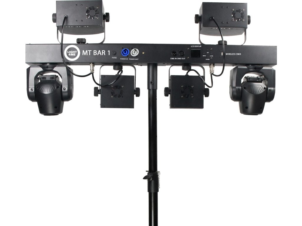 Light4Me MT BAR 1 není jen pokročilá technologie, ale také solidní a odolná konstrukce. Šasi vyrobené z železa, hliníku a plastu zajišťuje odolnost a práškové lakování zaručuje odolnost proti poškození. Třída krytí IP20 chrání zařízení před vniknutím pevných cizích těles o průměru 12,5 mm a větších, čímž zajišťuje odpovídající ochranu ve vnitřních prostorách, což činí zařízení ideálním pro dlouhodobé a bezporuchové používání. Výšku stativu lze nastavit v rozmezí 90–150 cm, což umožňuje přizpůsobit nastavení každé místnosti. Set je kompaktní a snadno se přepravuje, což umožňuje rychlou přípravu k použití. Vsaďte na profesionální osvětlení a vytvořte nezapomenutelnou show.