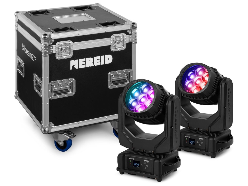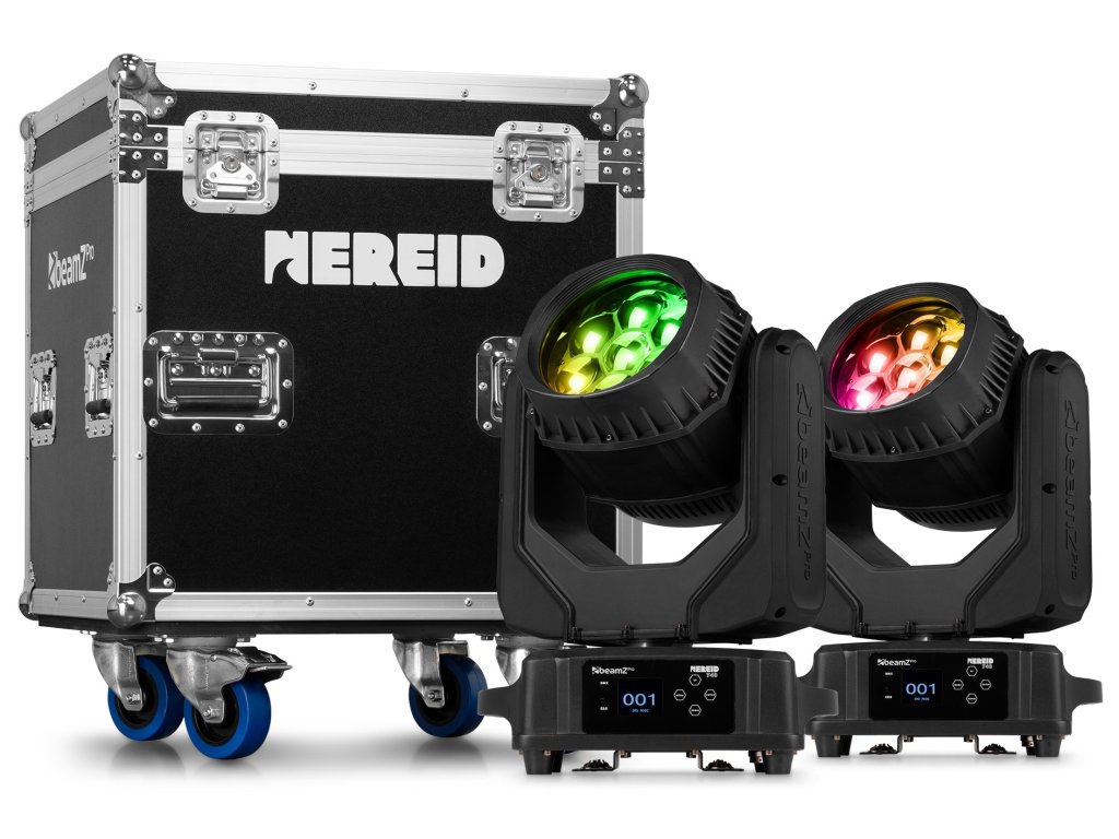 Kompletní sada 2 pohyblivých hlav Nereid740 BeeEye dodávaná v pevném a odolném přepravním kufru. Nereid740 je výkonná pohyblivá hlava typu wash/beam s lineárním motorizovaným zoomem, vybavená 7 ultrajasnými 40W LED diodami 4-v-1, využívající nejnovější technologie. Tato pohyblivá hlava pro vnitřní i venkovní použití je vybavena jedinečnými čočkami s designem včelí plástve a každá LED dioda může být ovládána samostatně, aby vytvářela úžasné efekty (Kaleido efekty). Je také vybavena extrémně výkonnými motory s redukcí hluku, které umožňují ultra rychlý pohyb v horizontální i vertikální rovině při minimální hlučnosti. Hlava je ideální pro vnitřní i venkovní produkce, akce a instalace, které vyžadují větší světelný výkon.