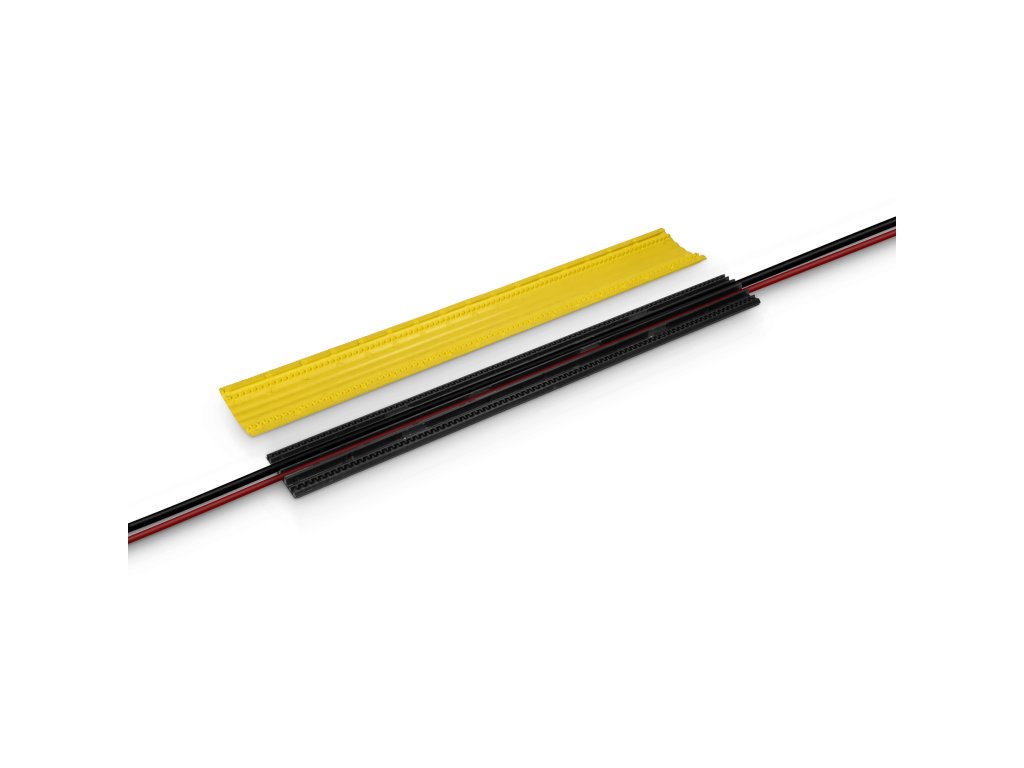 Systém nabízí flexibilní řešení díky přímým, 90° a koncovým rampám. Lze jej snadno upravit na požadovanou délku pomocí řezacích vodítek. Klikaté připojení zajišťuje pevné spojení jednotlivých dílů a otvory pro šrouby umožňují spolehlivé upevnění do podlahy. Díky tomu nejenže efektivně organizuje kabely, ale především eliminuje riziko zakopnutí a zajišťuje bezpečný pohyb.