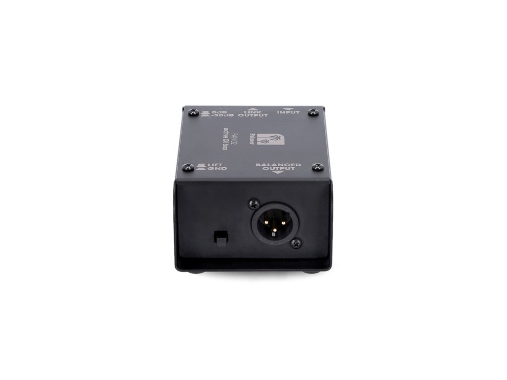 Palmer PAN 02 má symetrický transformátorový výstup a dosahuje maximální výstupní impedance +10 dB při napájení fantomem. Robustní kovové pouzdro s rozměry 110 x 73 x 42 mm zaručuje odolnost.