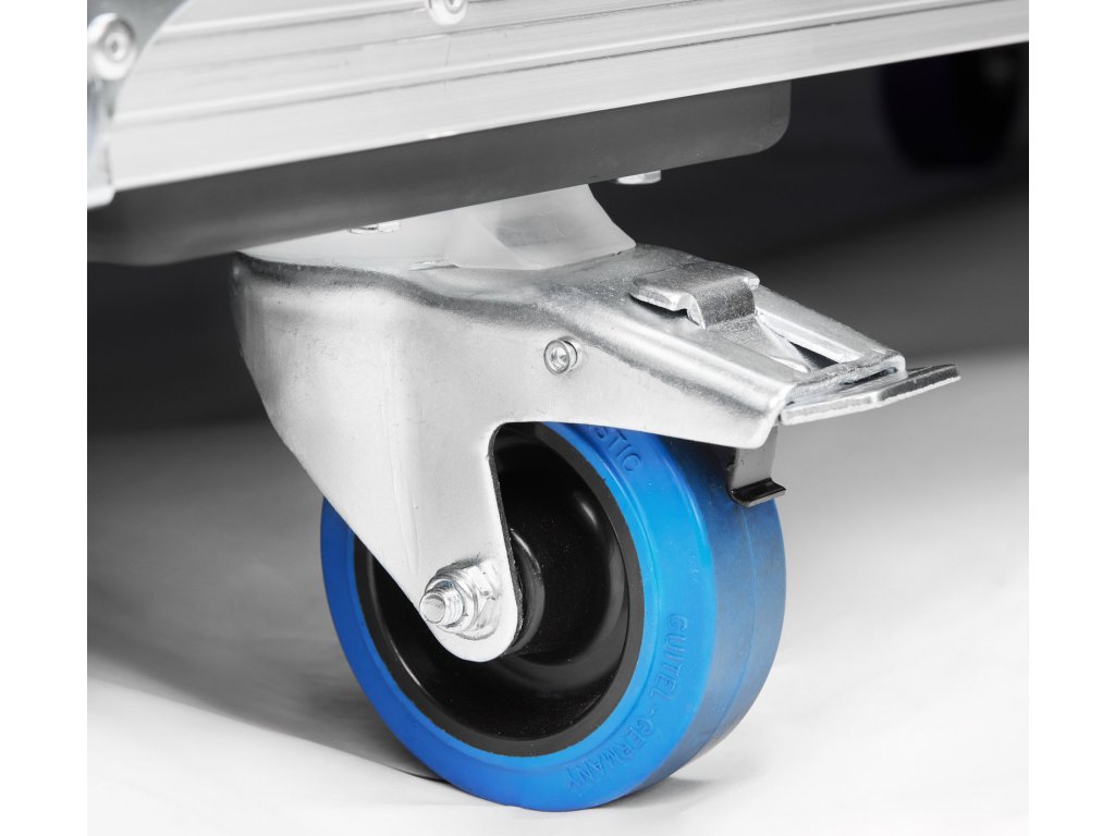 - Čtyři otočná 100 mm kolečka, dvě s brzdou
