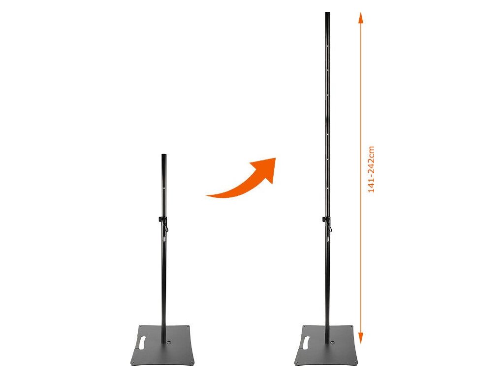 DNA POLE ONE je repro stativ, který vyniká moderním designem a robustní konstrukcí. Jeho čtvercová základna o rozměrech 54 x 52,5 cm s gumovými protiskluzovými nožičkami zajišťuje stabilitu a jistotu při práci s různými zařízeními. Nastavitelná výška od 141 do 242 cm umožňuje přizpůsobit stativ individuálním potřebám a zajišťuje optimální pracovní podmínky. Pojistný kolík umístěný na tyči usnadňuje nastavení výšky a chrání stativ před nechtěným zasunutím. S hmotností 16,6 kg a maximální nosností 50 kg je DNA POLE ONE nejen pevným, ale také mimořádně odolným vybavením. Díky černé barvě, inovativnímu designu a práškovému lakování je tento stativ nejen funkční, ale představuje také estetický doplněk vašeho pracoviště. S DNA POLE ONE bude vaše práce efektivnější a pohodlnější, což zajistí, že každý projekt bude realizován s nejvyšší přesností a profesionalitou.