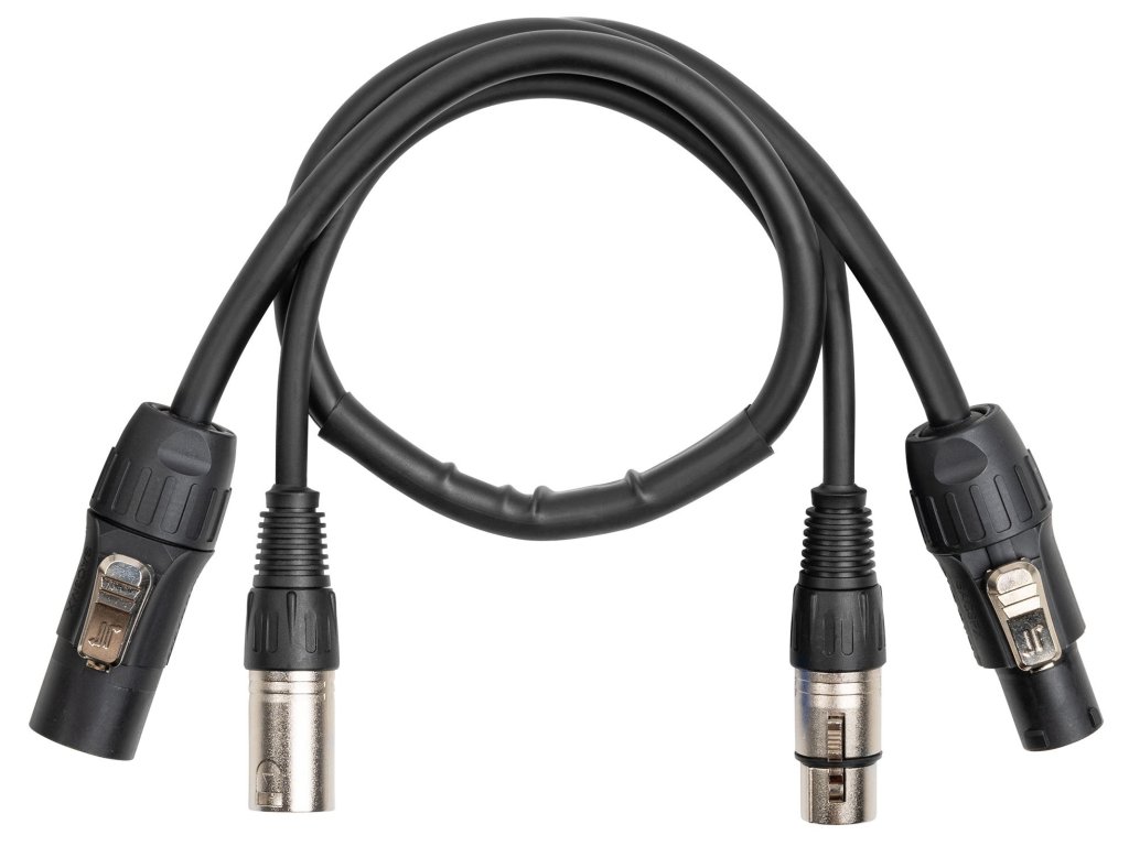 Combi kabel pro vedení napájení a DMX signálu v jednom kabelu. Díky konektorům Powerconnector TR a XLR na obou koncích usnadňují tyto kabely profesionální zapojení LED efektů, pohyblivých hlav a wash svítidel.