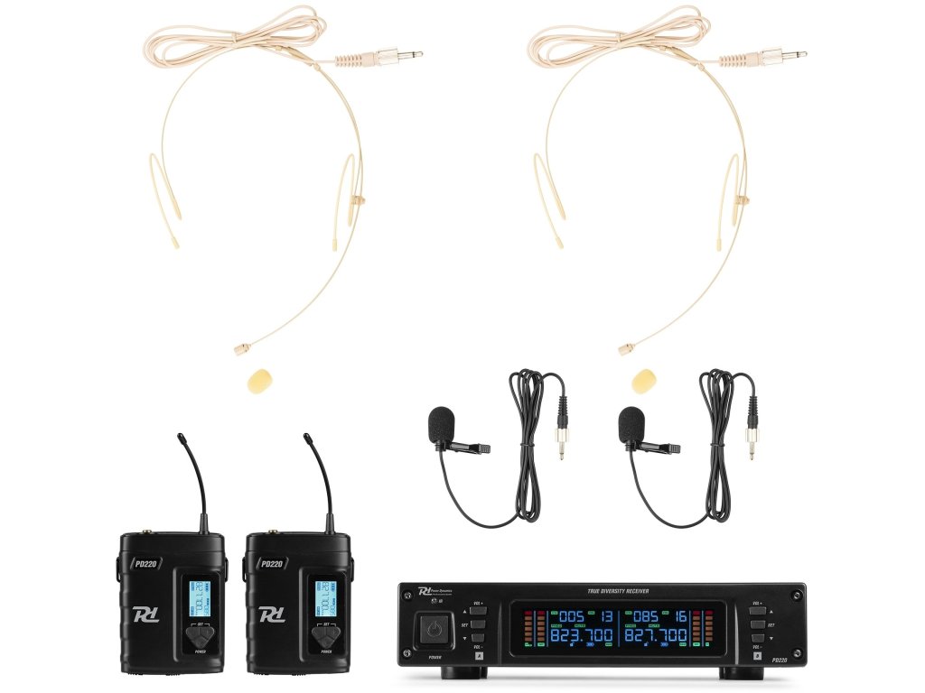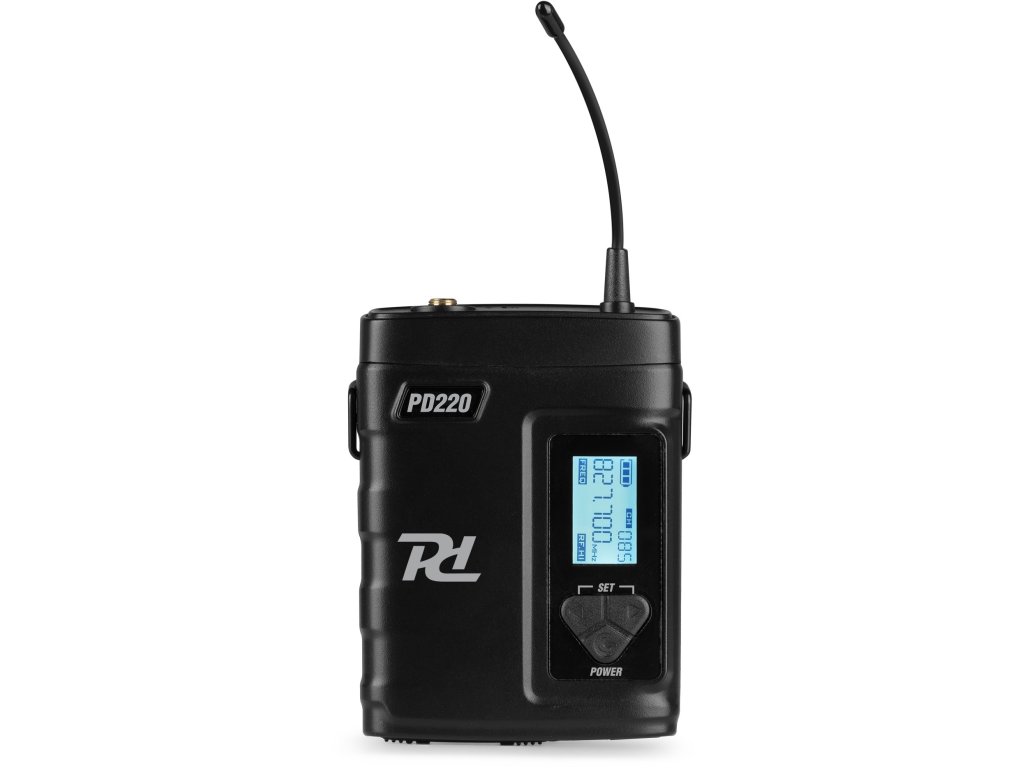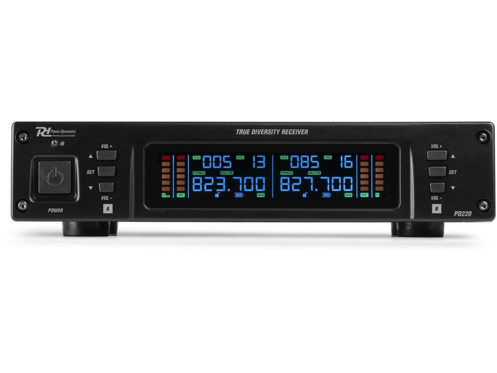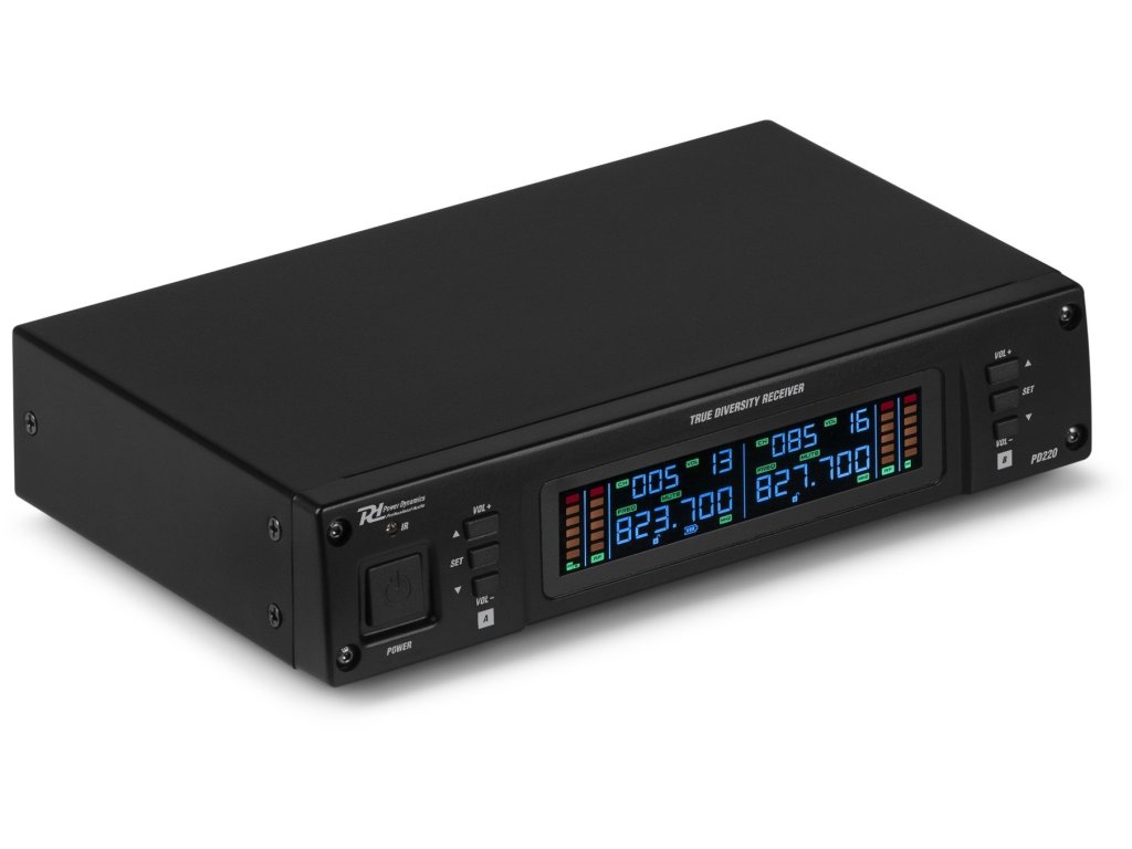 PD220 je profesionální, spolehlivý bezdrátový mikrofonní systém UHF s true diversity příjmem. Konstrukce True diversity znamená příjem bez rušení v prostředí s vysokými rádiovými frekvencemi a vestavěný systém redukce šumu kompenzuje vysoké úrovně šumu v pozadí. Přijímač lze v kombinaci s montážními držáky umístit na povrch nebo zabudovat do rackové skříně. Mezi další funkce patří různé volitelné frekvence UHF, automatická detekce kanálů, IR přizpůsobení frekvencí, intuitivní ovládací panel a velký displej LCD. Mikrofonní systém pracuje v pásmu 863-865 MHz a je vhodný pro jevištní, prezentační, hlasové a další aplikace.