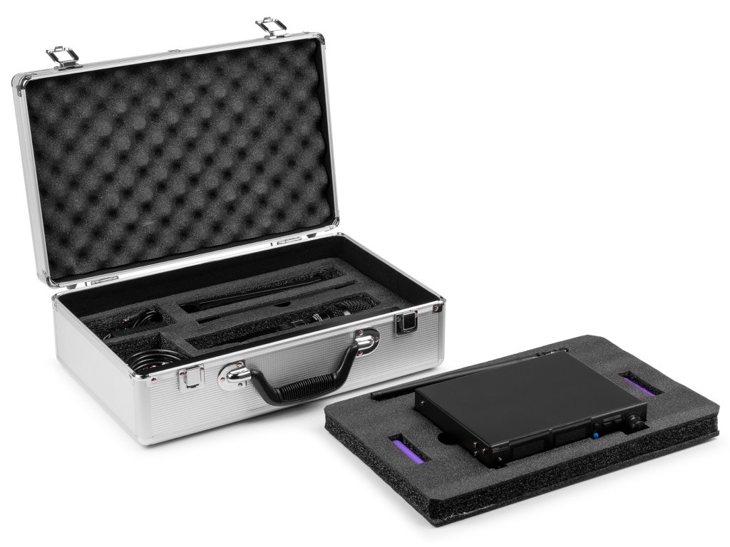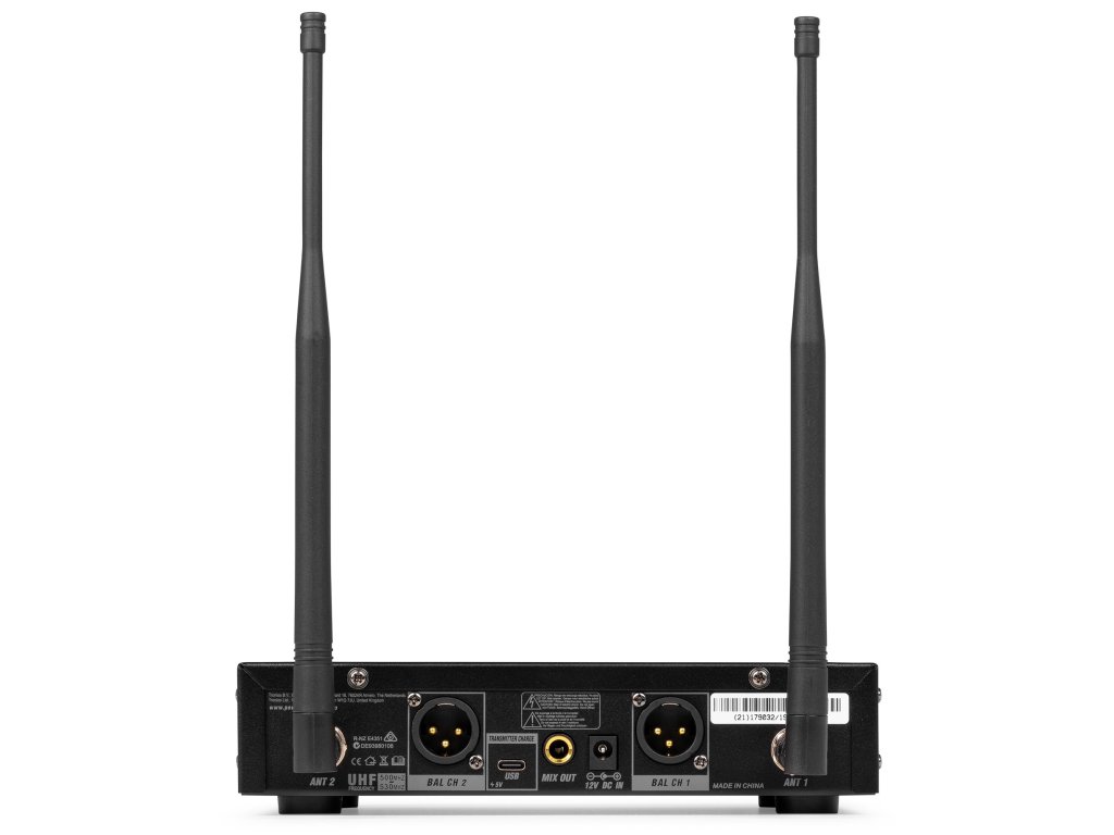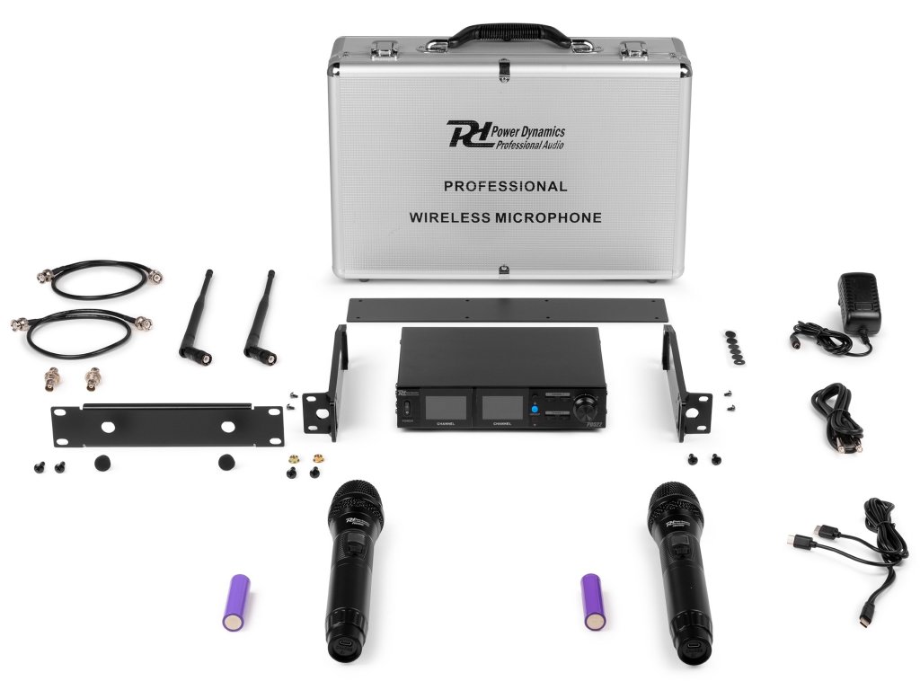 Tato sada obsahuje dvoukanálový přijímač UHF, dva ruční mikrofony s dobíjecí li-ion baterií, dvě odnímatelné antény BNC, dva prodlužovací kabely pro přední montáž antén, napájecí adaptér a hliníkový kufr. Součástí balení jsou také kabely USB pro nabíjení bezdrátových mikrofonů.