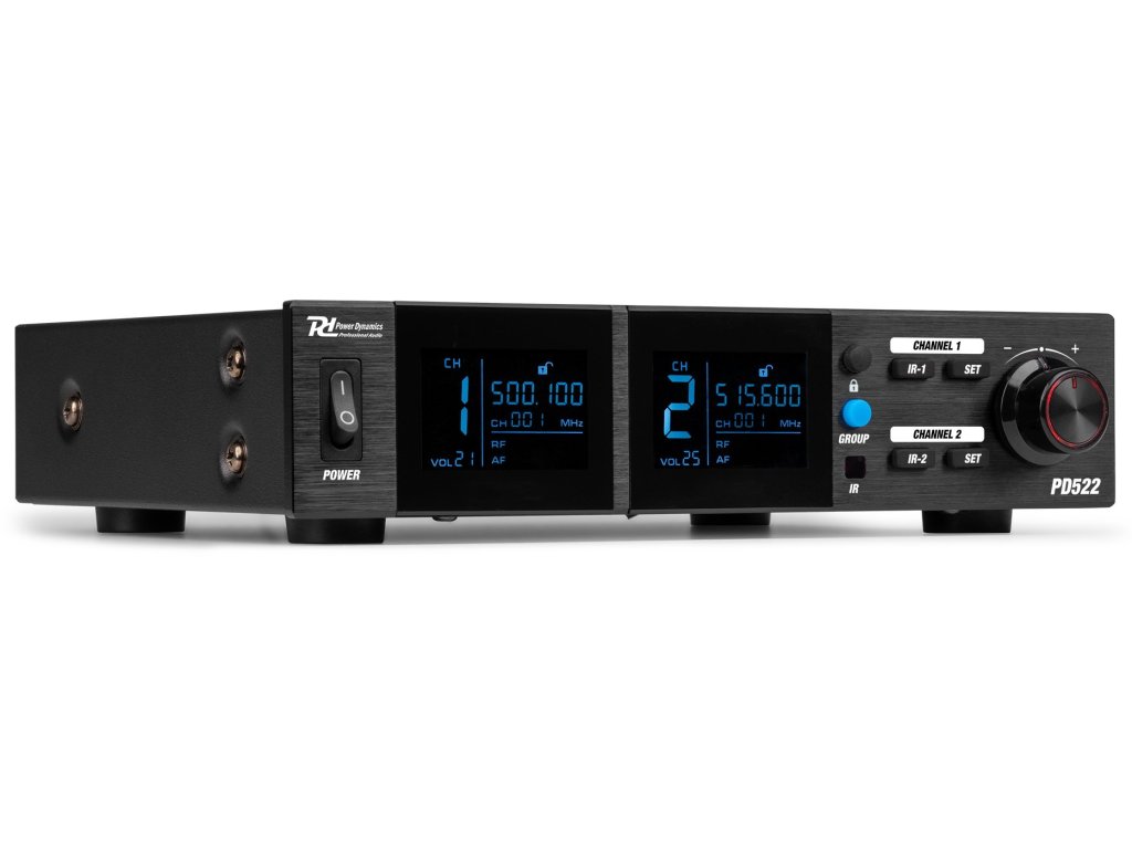 PD522 je profesionální bezdrátový mikrofonní systém vybavený 2x 100 kanály a určený pro větší vystoupení nebo akce. Přijímač s přehledným dynamickým LCD displejem zajišťuje přenos bez rušení, spolu s kvalitní funkcí squelch a PLL syntezátorem. Mikrofonní systém PD522 pracuje v pásmu 500-530 MHz a je vhodný pro vokály, prezentace, školení a další PA-aplikace.