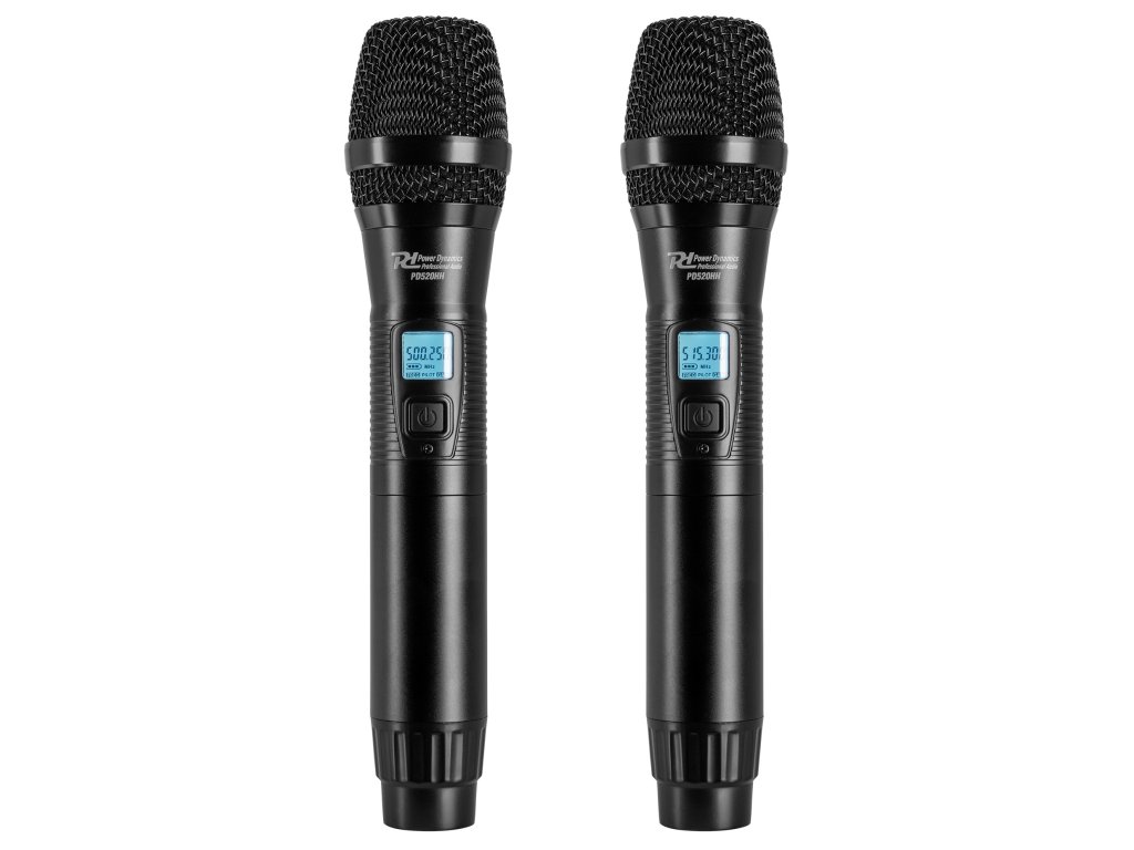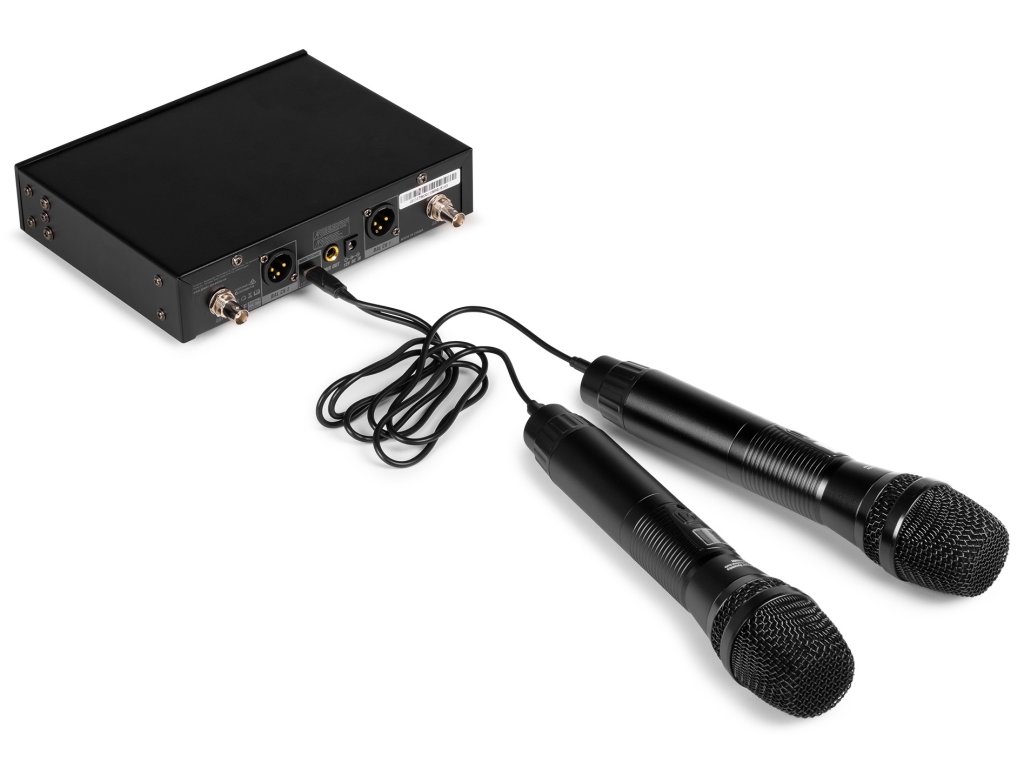- 2 ruční mikrofony s dynamickým displejem LCD a funkcí ztlumení zvuku