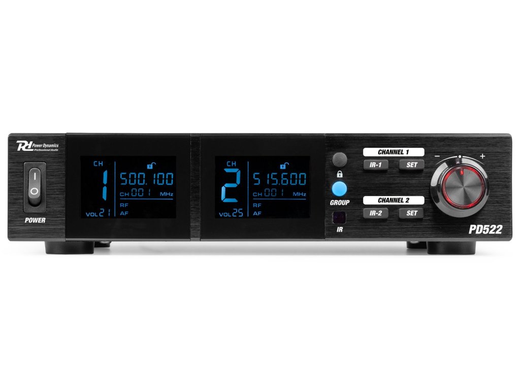 PD522B je profesionální bezdrátový mikrofonní systém vybavený 2x 100 kanály a určený pro větší vystoupení nebo akce. Přijímač s přehledným dynamickým LCD displejem zajišťuje přenos bez rušení, spolu s kvalitní funkcí squelch a PLL syntezátorem. Mikrofonní systém PD522B pracuje v pásmu 500-530 MHz a je vhodný pro vokály, prezentace, školení a další PA-aplikace.