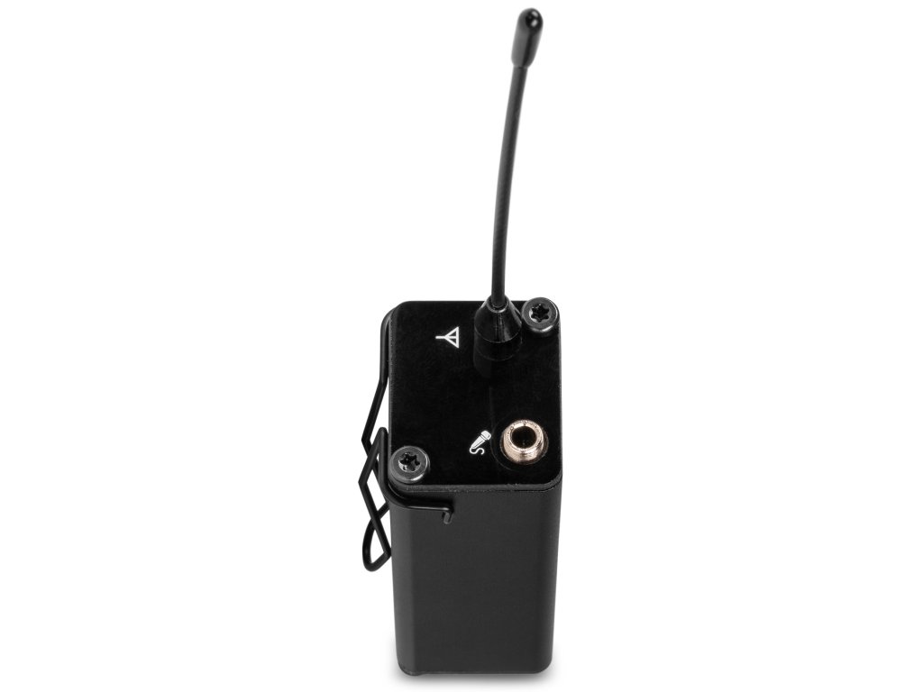 - 2 bodypack vysílače s dynamickým LCD displejem a funkcí mute