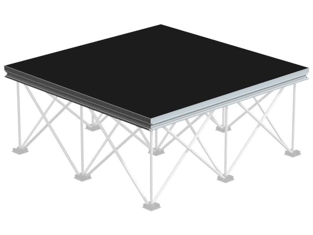 Modulární stolní plošiny pro přenosné rozložení, snadné sestavení - ideální pro univerzity, školy, konferenční pódia, mola, hotely a další. Základna z černé překližky má speciální protiskluzovou vrstvu „Hexa“, která zajišťuje maximální přilnavost, takže je vhodná pro vnitřní i venkovní použití.