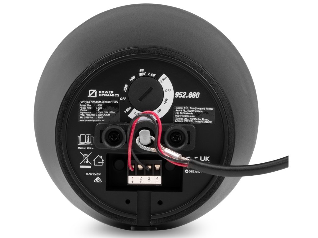 Závěsné reproduktory Purity jsou navrženy tak, aby poskytovaly vynikající zvukový výkon v moderních komerčních prostorách. Díky vylepšenému akustickému profilu a elegantnímu designu jsou tyto závěsné reproduktory ideální pro vysoce kvalitní reprodukci hudby na pozadí a čistý přenos hlasu. Řada Purity je vyrobena z prvotřídních materiálů, včetně grafitového basového reproduktoru pro hlubší a přesnější basy a vysoce výkonného výškového reproduktoru s hedvábnou kopulkou pro detailní výšky, a zajišťuje vyvážený a pohlcující poslechový zážitek. Díky provozním režimům 8 Ohm a 100 V lze tyto závěsné reproduktory flexibilně integrovat do široké škály audio systémů, což je činí ideálními pro kanceláře, showroomy, obchody, restaurace a další komerční prostory.