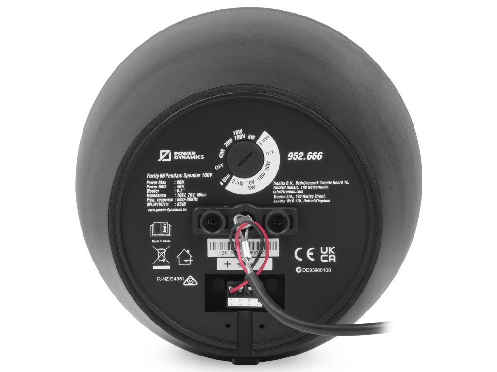 Závěsné reproduktory Purity jsou navrženy tak, aby poskytovaly vynikající zvukový výkon v moderních komerčních prostorách. Díky vylepšenému akustickému profilu a elegantnímu designu jsou tyto závěsné reproduktory ideální pro vysoce kvalitní reprodukci hudby na pozadí a čistý přenos hlasu. Řada Purity je vyrobena z prvotřídních materiálů, včetně grafitového basového reproduktoru pro hlubší a přesnější basy a vysoce výkonného výškového reproduktoru s hedvábnou kopulkou pro detailní výšky, a zajišťuje vyvážený a pohlcující poslechový zážitek. Díky provozním režimům 8 Ohm a 100 V lze tyto závěsné reproduktory flexibilně integrovat do široké škály audio systémů, což je činí ideálními pro kanceláře, showroomy, obchody, restaurace a další komerční prostory.