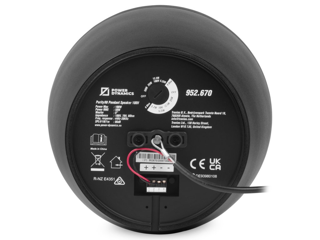 Závěsné reproduktory Purity jsou navrženy tak, aby poskytovaly vynikající zvukový výkon v moderních komerčních prostorách. Díky vylepšenému akustickému profilu a elegantnímu designu jsou tyto závěsné reproduktory ideální pro vysoce kvalitní reprodukci hudby na pozadí a čistý přenos hlasu. Řada Purity je vyrobena z prvotřídních materiálů, včetně grafitového basového reproduktoru pro hlubší a přesnější basy a vysoce výkonného výškového reproduktoru s hedvábnou kopulkou pro detailní výšky, a zajišťuje vyvážený a pohlcující poslechový zážitek. Díky provozním režimům 8 Ohm a 100 V lze tyto závěsné reproduktory flexibilně integrovat do široké škály audio systémů, což je činí ideálními pro kanceláře, showroomy, obchody, restaurace a další komerční prostory.