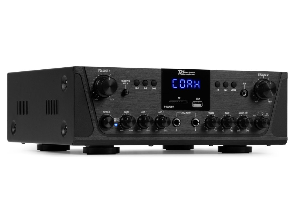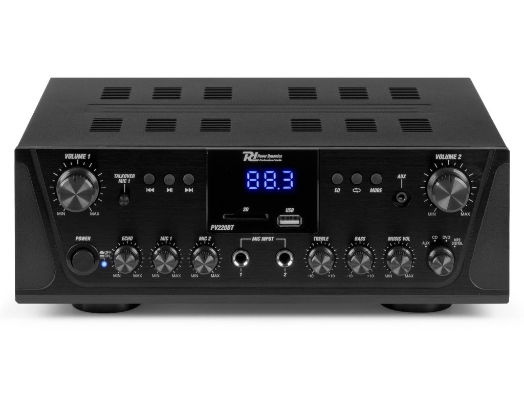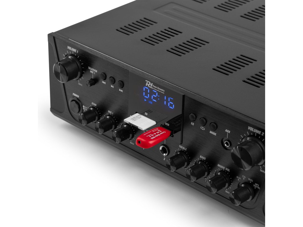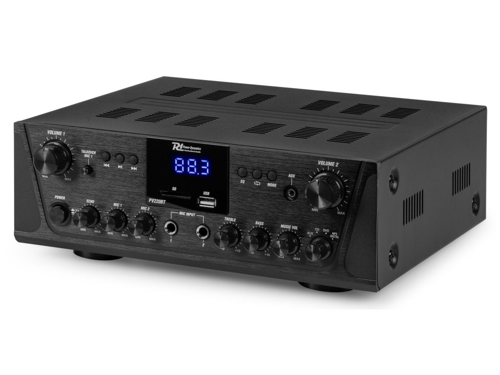 Řada PV2 je řada inteligentních stereo vícekanálových zesilovačů vybavených pokročilou bezdrátovou technologií 4.2 BT a funguje se všemi nejnovějšími zařízeními včetně smartphonů, tabletů, notebooků a počítačů. Užijte si sladký zvuk streamovaný z vaší osobní digitální hudební sbírky. Všechny systémy nabízejí možnost posílat hudbu nebo oznámení na různé požadované kanály (Multiroom) s nastavitelným ovládáním hlasitosti pro každý kanál. Díky slotu pro USB / SD kartu pro přehrávání MP3 / WMA, FM rádio s LED displejem a dvěma mikrofonními vstupy s ovládáním tónu a zvuku Bass / Treble, je tento zesilovač vhodný pro domácí nebo kancelářské použití.
