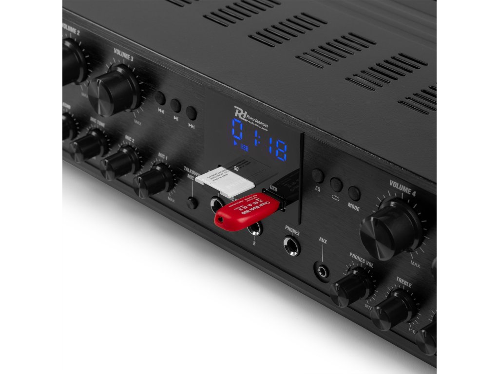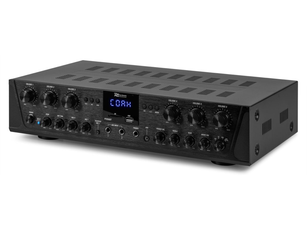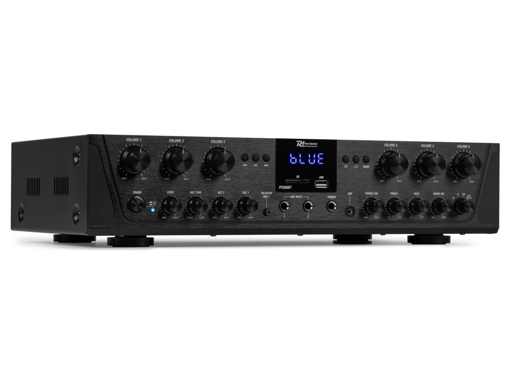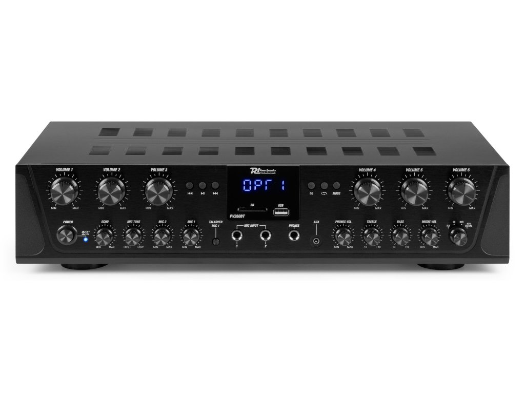 Řada PV2 je řada inteligentních stereo vícekanálových zesilovačů vybavených pokročilou bezdrátovou technologií 4.2 BT, fungující se všemi nejnovějšími zařízeními včetně smartphonů, tabletů, notebooků a počítačů. Užijte si sladký zvuk streamovaný z vaší osobní digitální hudební sbírky. Všechny systémy nabízejí možnost posílat hudbu nebo oznámení s nastavitelným ovládáním hlasitosti pro každý kanál. Díky slotu pro USB / SD karty pro přehrávání MP3 / WMA, FM rádio s LED displejem a dvěma mikrofonními vstupy s ovládáním tónu a zvuku Bass / Treble, je tento zesilovač vhodný pro domácí nebo kancelářské použití.