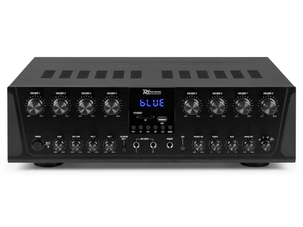 PV280BT je 8-zónový inteligentní vícekanálový zesilovač vybavený pokročilou bezdrátovou technologií Bluetooth 5.0 a funguje se všemi nejnovějšími zařízeními včetně smartphonů, tabletů, notebooků a počítačů. Užijte si kvalitní zvuk streamovaný z vaší osobní digitální hudební sbírky. Systém nabízí možnost posílat hudbu nebo hlášení na různé požadované zóny (multiroom) s nastavitelným ovládáním hlasitosti pro každou zónu. Díky USB/SD slotu pro přehrávání MP3/WMA, FM rádiu s LED displejem a dvěma mikrofonním vstupům s ovládáním basů/výšek je tento zesilovač vhodný pro domácí nebo kancelářské použití.