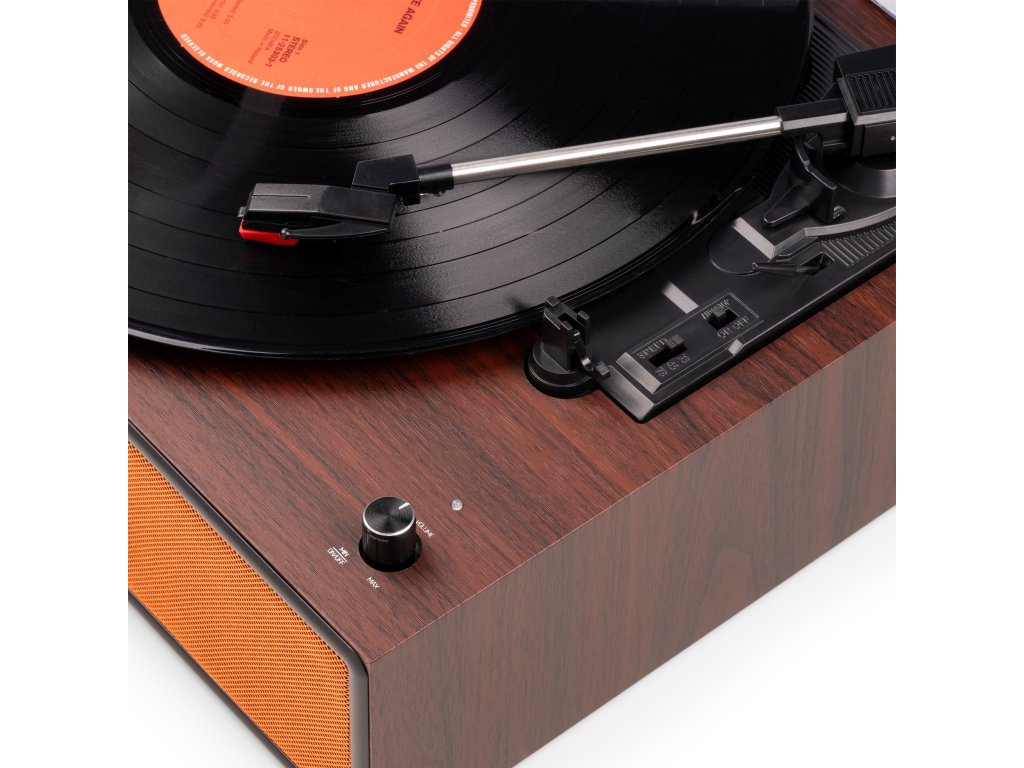 Objevte nadčasové kouzlo vinylových desek s Audizio Reno, stylovým gramofonem navrženým pro opravdové milovníky hudby. Gramofon Reno, inspirovaný vintage estetikou a moderní jednoduchostí, se vyznačuje dřevěnou povrchovou úpravou, vestavěnými stereofonními reproduktory a ochranným krytem proti prachu, to vše zabalené do nostalgického retro designu. Ať už posloucháte staré klasiky nebo objevujete nové oblíbené skladby, Reno je ideální pro běžný poslech i jako dekorace do interiéru. Díky vestavěnému Bluetooth přijímači lze digitální hudbu také bezdrátově streamovat ze smartphonu, tabletu nebo jiného zařízení kompatibilního s Bluetooth a poslouchat ji přes stereofonní reproduktory.