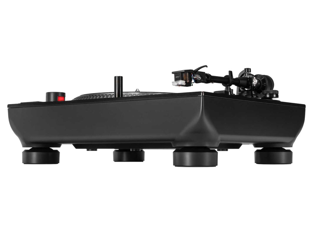 Nově vyvinutý DC motor 7" gramofonu vyniká vysokým točivým momentem 2,5 kg/cm, který zajišťuje maximální přesnost a optimální výkon. Jemně vyladěné charakteristiky motoru minimalizují kolísání rychlosti a poskytují spolehlivou podporu pro pokročilé scratchingové techniky. Kromě toho precizně vyrobený talíř z tlakově litého hliníku a inovativní integrovaný spínaný napájecí zdroj výrazně snižují rušení.