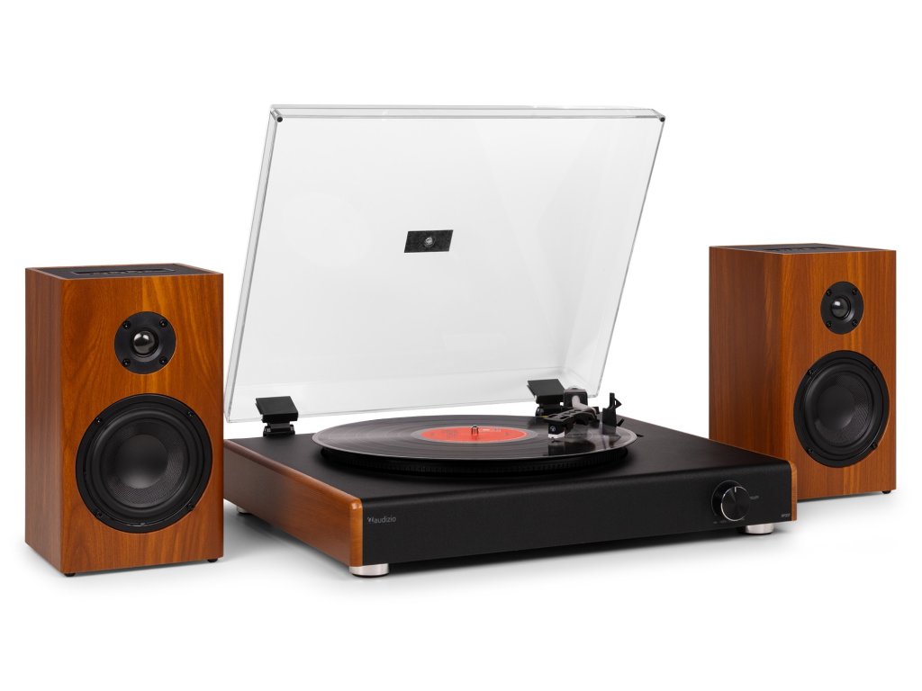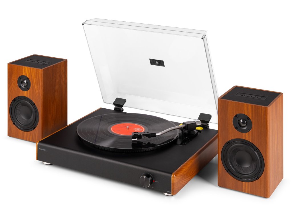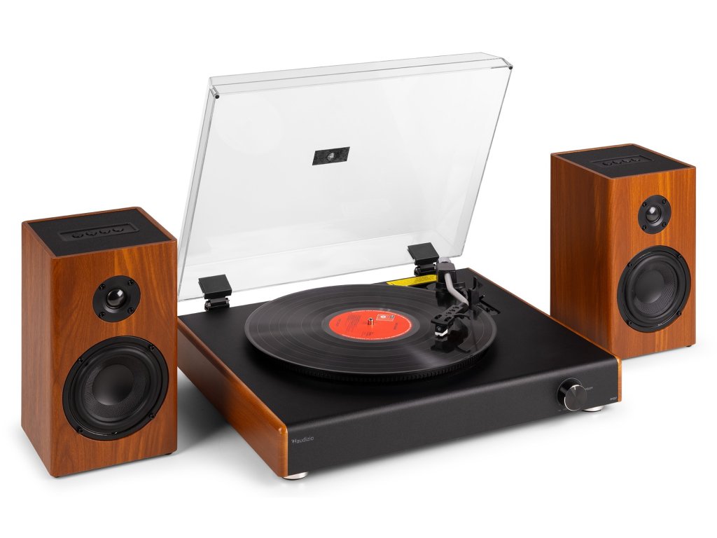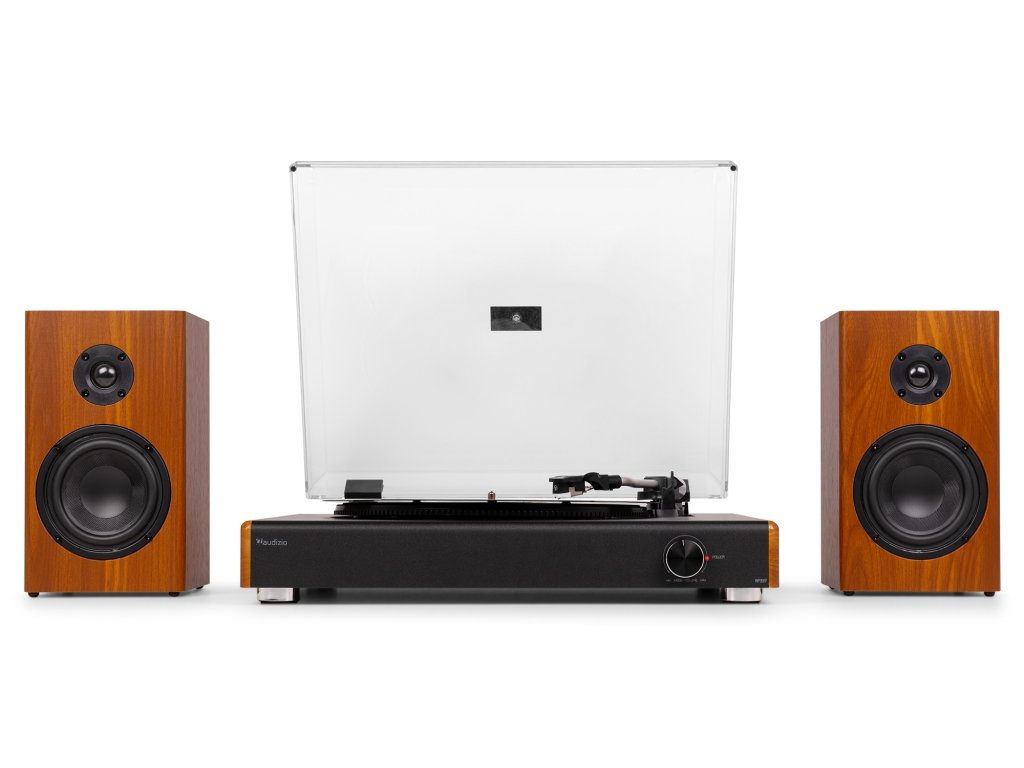 - Stylový vintage gramofon se dvěma full range stereo reproduktory